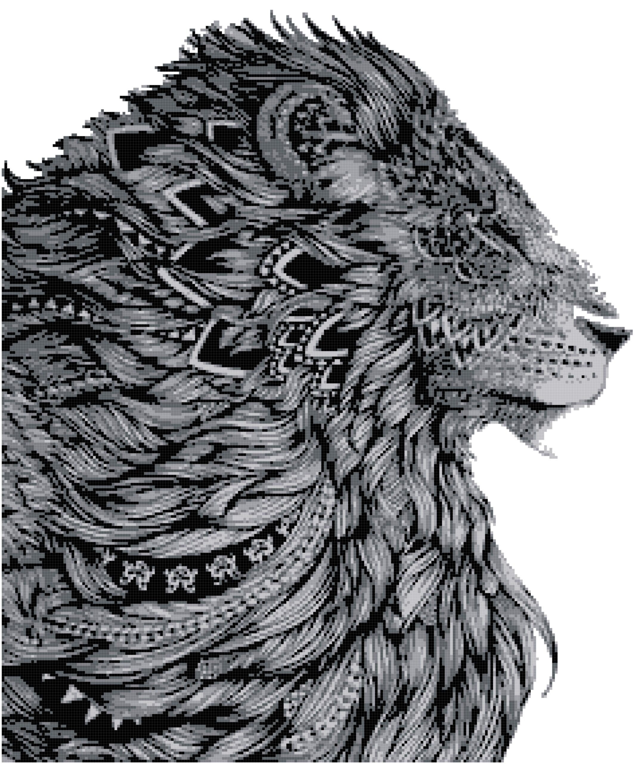 Adult Coloring Lion Cross Stitch Pattern