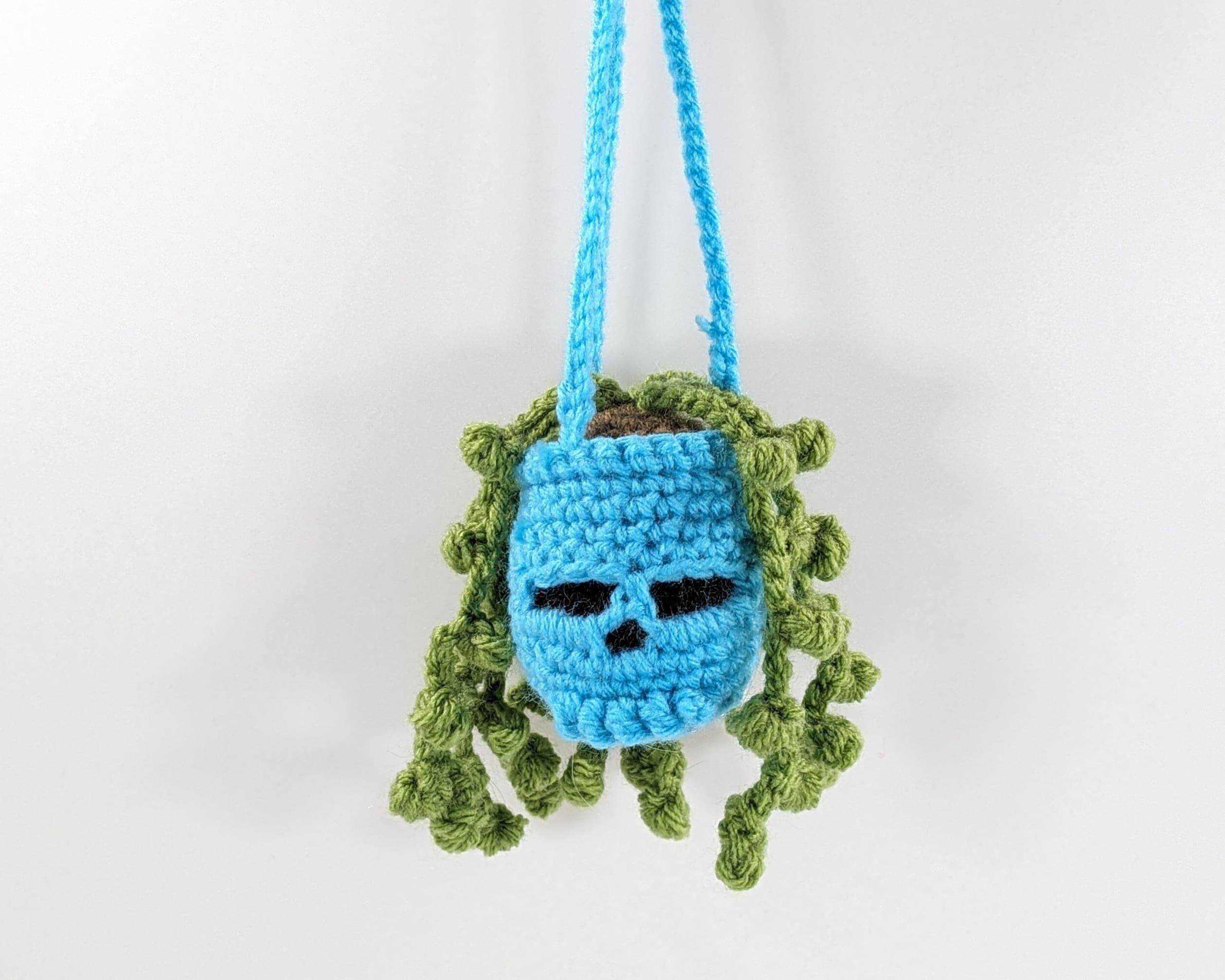 Aqua Skull Hanging Crochet Plant Car Decor