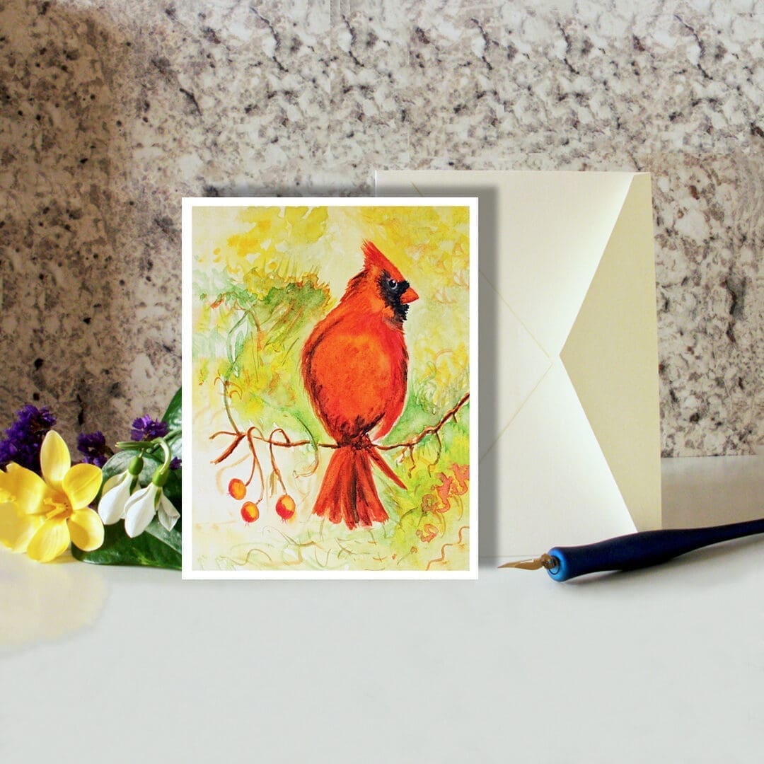 Capture the beauty of fall with our Autumn Cardinal Bird Nature Art Greeting Card! Featuring a stunning painting of a vibrant cardinal, this card is the perfect way to warmly greet your loved ones. Show them you care and spread the joy of nature.