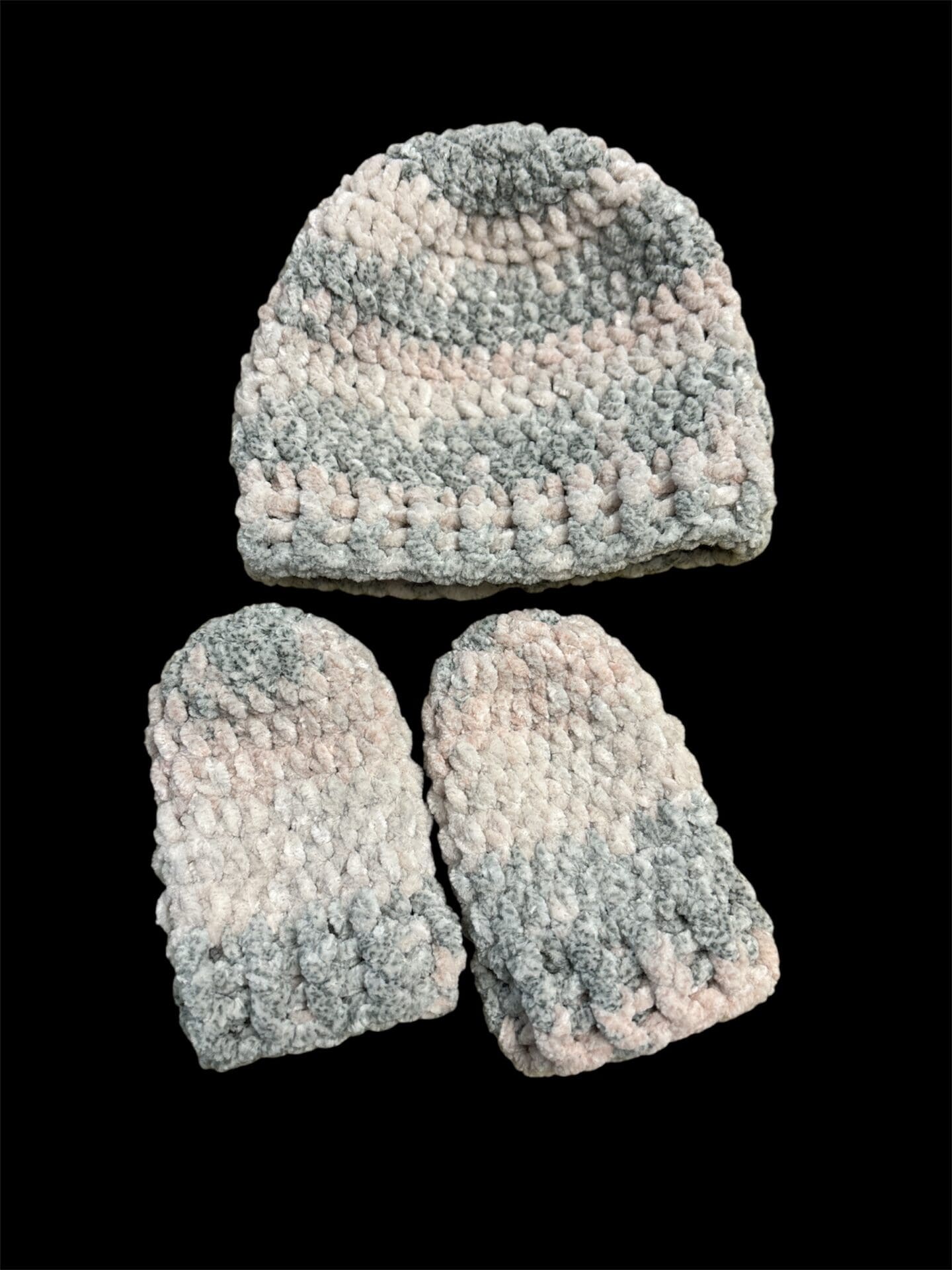 Soft Crochet Baby Set Hat and Mittens Size Newborn