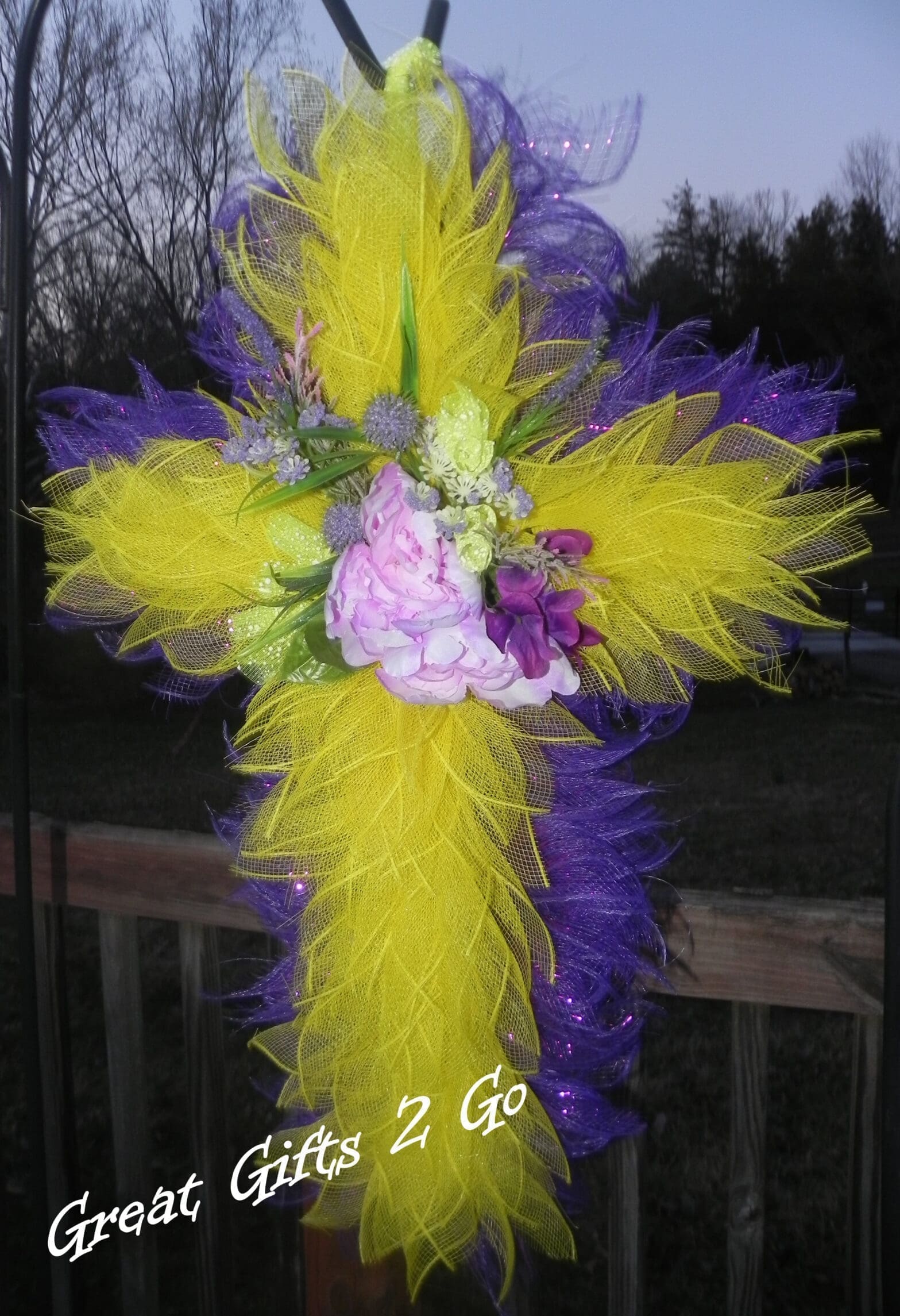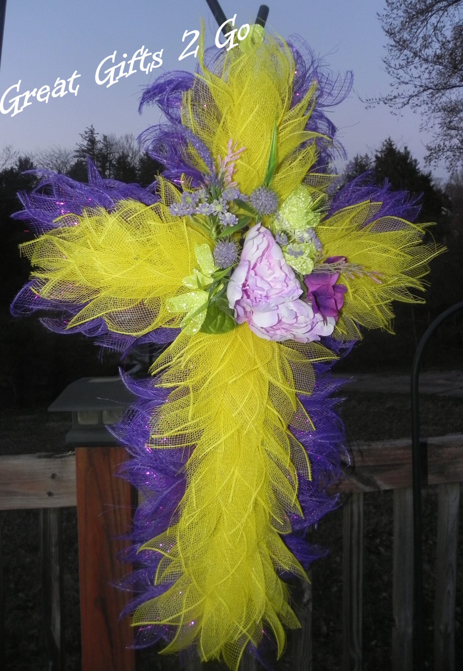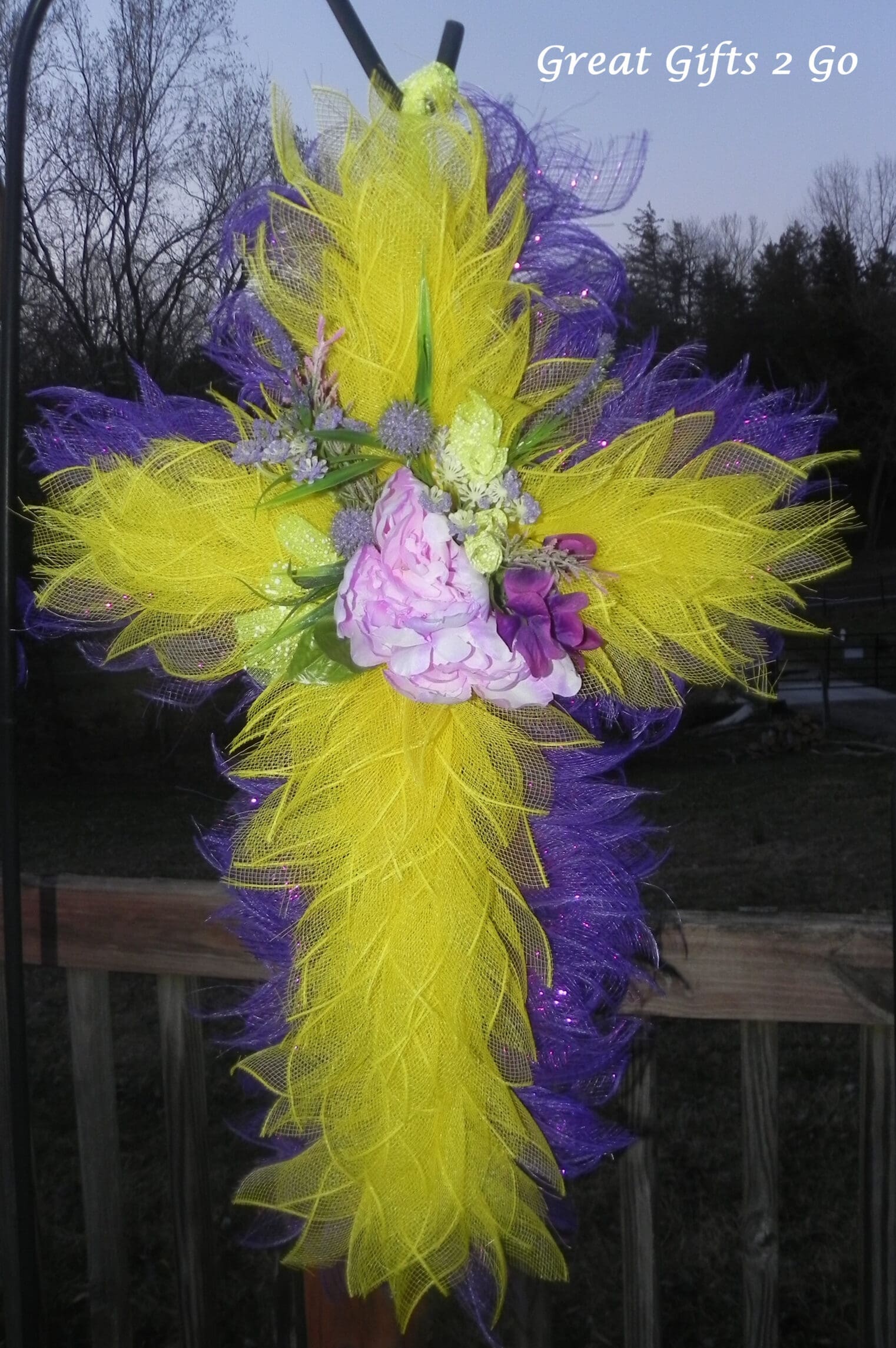 Beautiful Handmade Yellow and Purple Cross Wreath