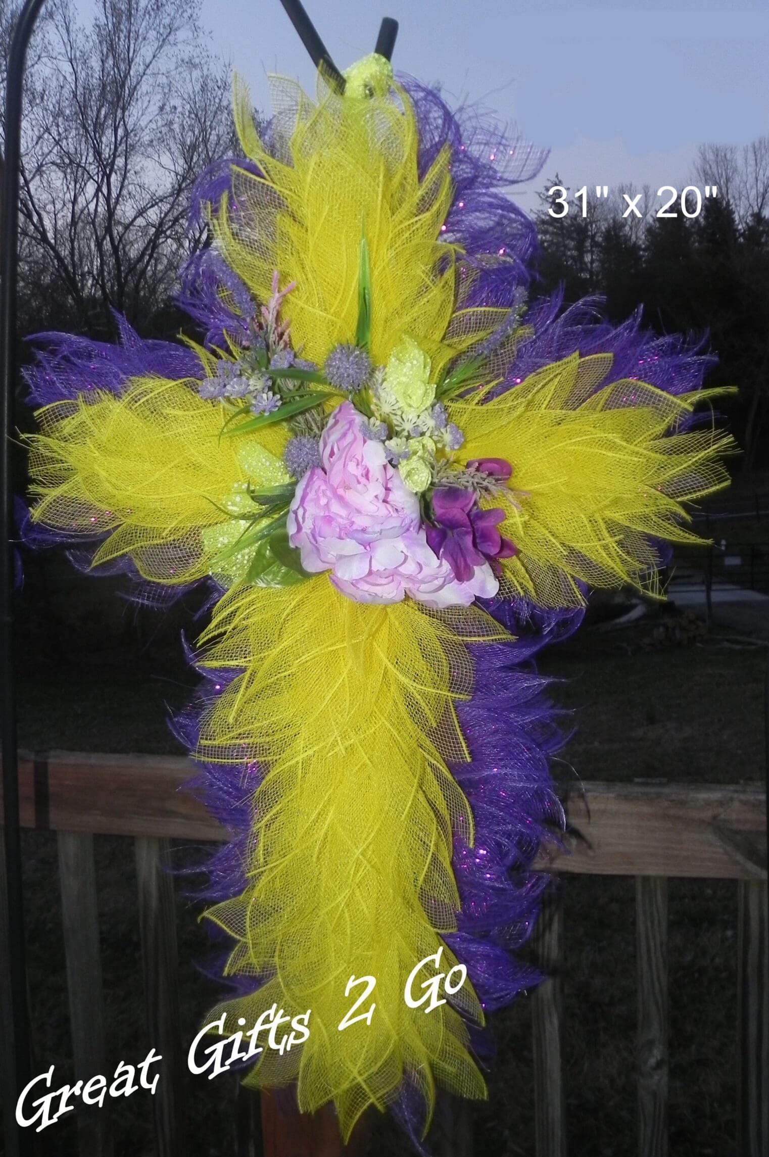 Specification: Beautiful Handmade Yellow and Purple Cross Wreath