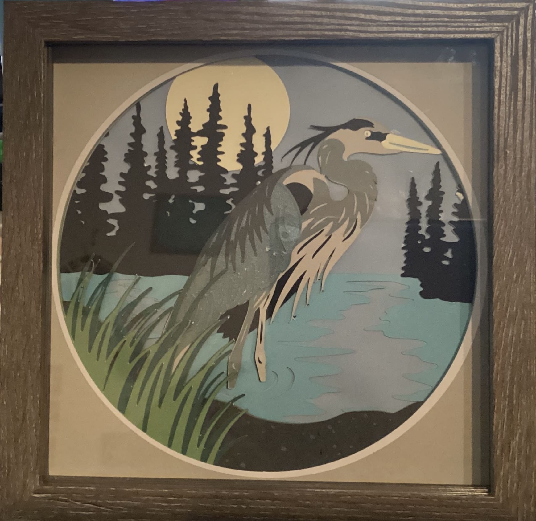 As a handcrafted shadow box, each layer is carefully cut and assembled by hand to ensure precision and uniqueness. The heron shadow box design highlights the graceful posture and flowing feathers of the bird, making it an ideal choice for nature inspired wall art or tranquil home decor. Subtle color tones allow this shadow box to blend seamlessly with rustic, cabin, coastal, or modern interiors.