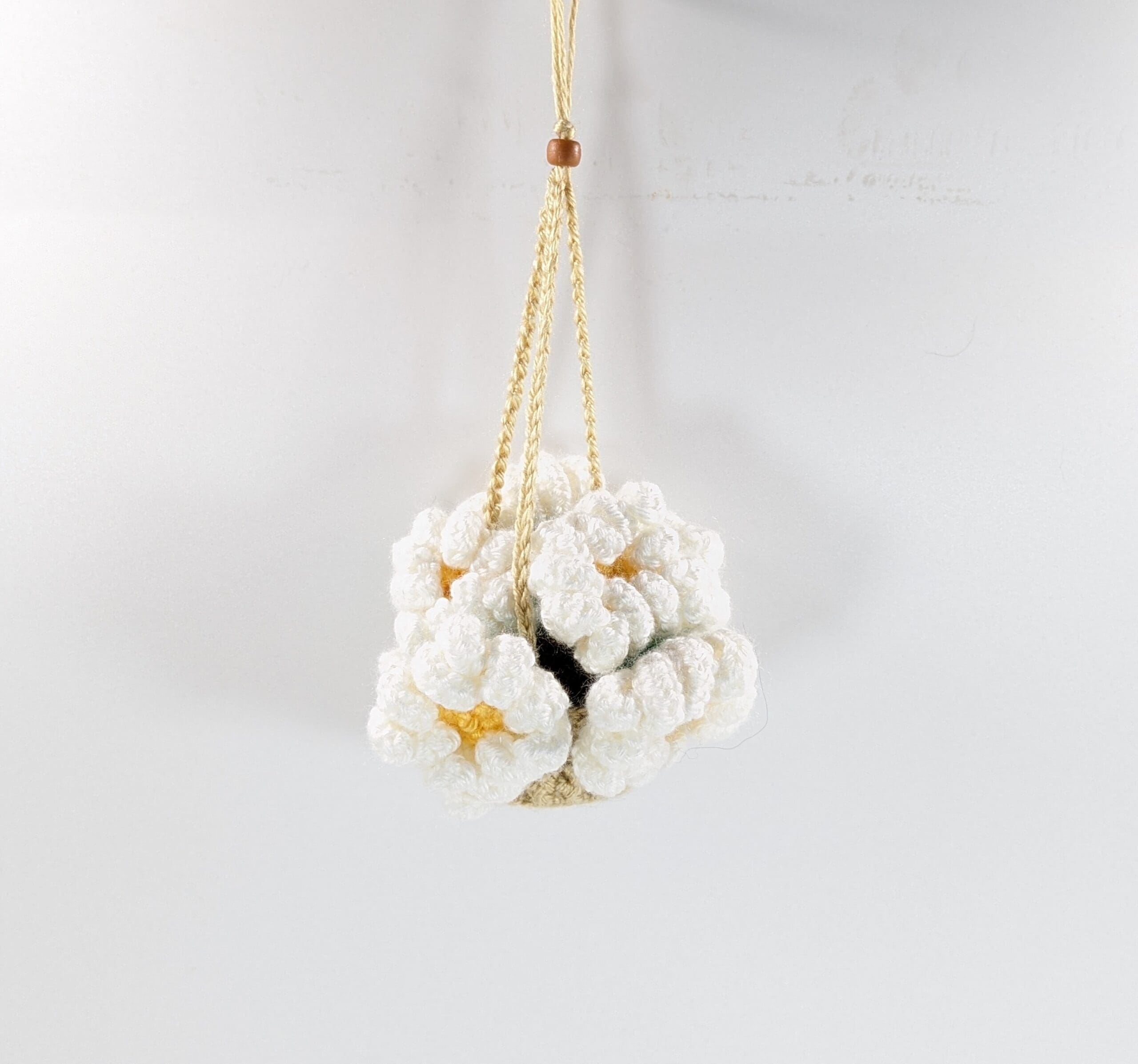 You can hand this adorable mini plant from the mirror of your car. Also each plant comes in a 2 inch crochet pot with six crochet daisies to fill the pot. You can use this plant in any room of your house. Also you can find more plant and home decor in my shop. Your plant can be customized with darker leaves or a different color pot. Please message me with your choices.