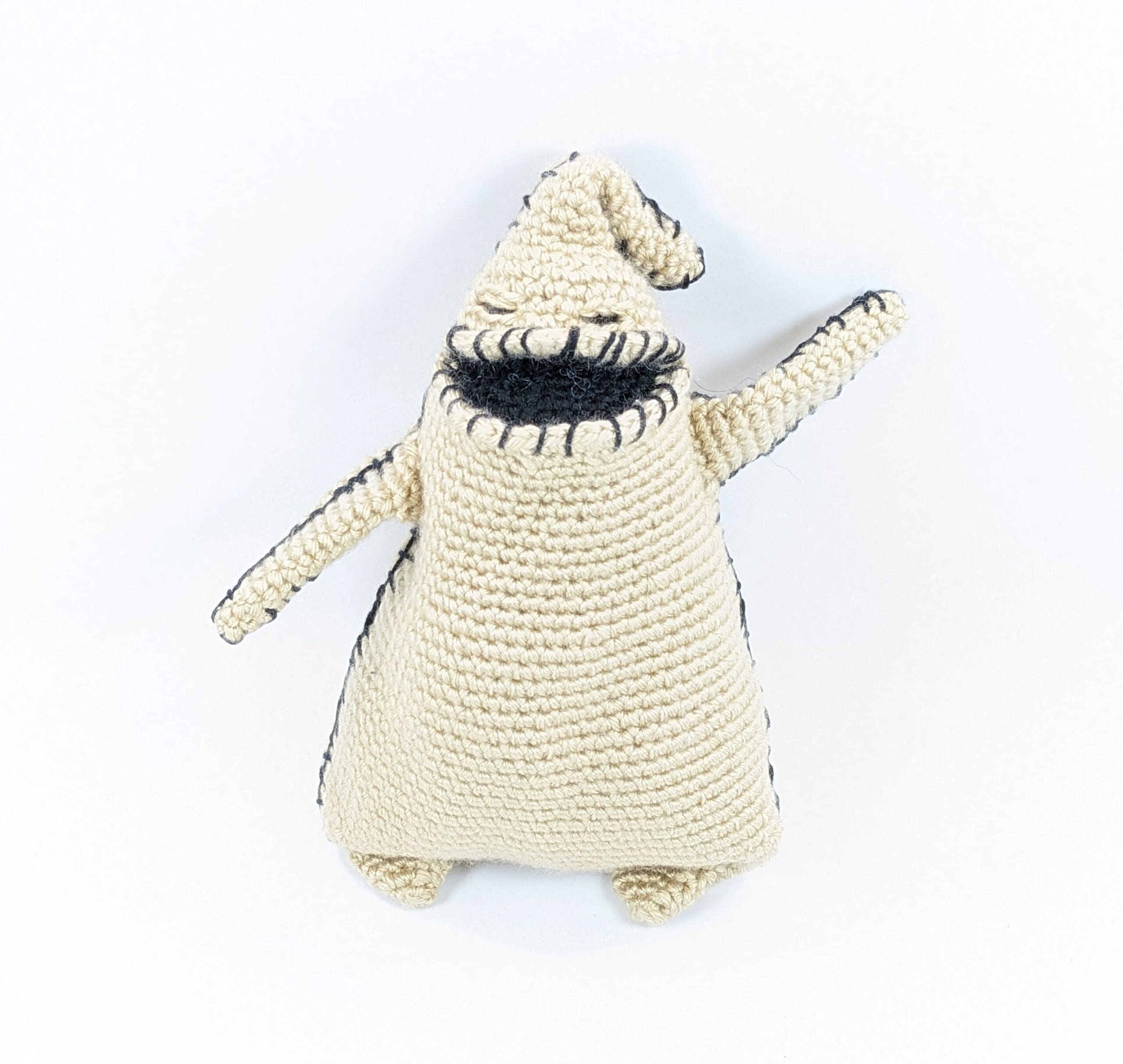 Boogie Man Crochet Halloween Decor. You can now add a fun version of Scary Boogie Man to your collection. Also this character measures 6 1/2 inches tall. You can easily stand him for any setting. Also he would make a great gift for any Nightmare Before Christmas fan. You can find a large selection of fun Halloween plus movie related items in my shop.