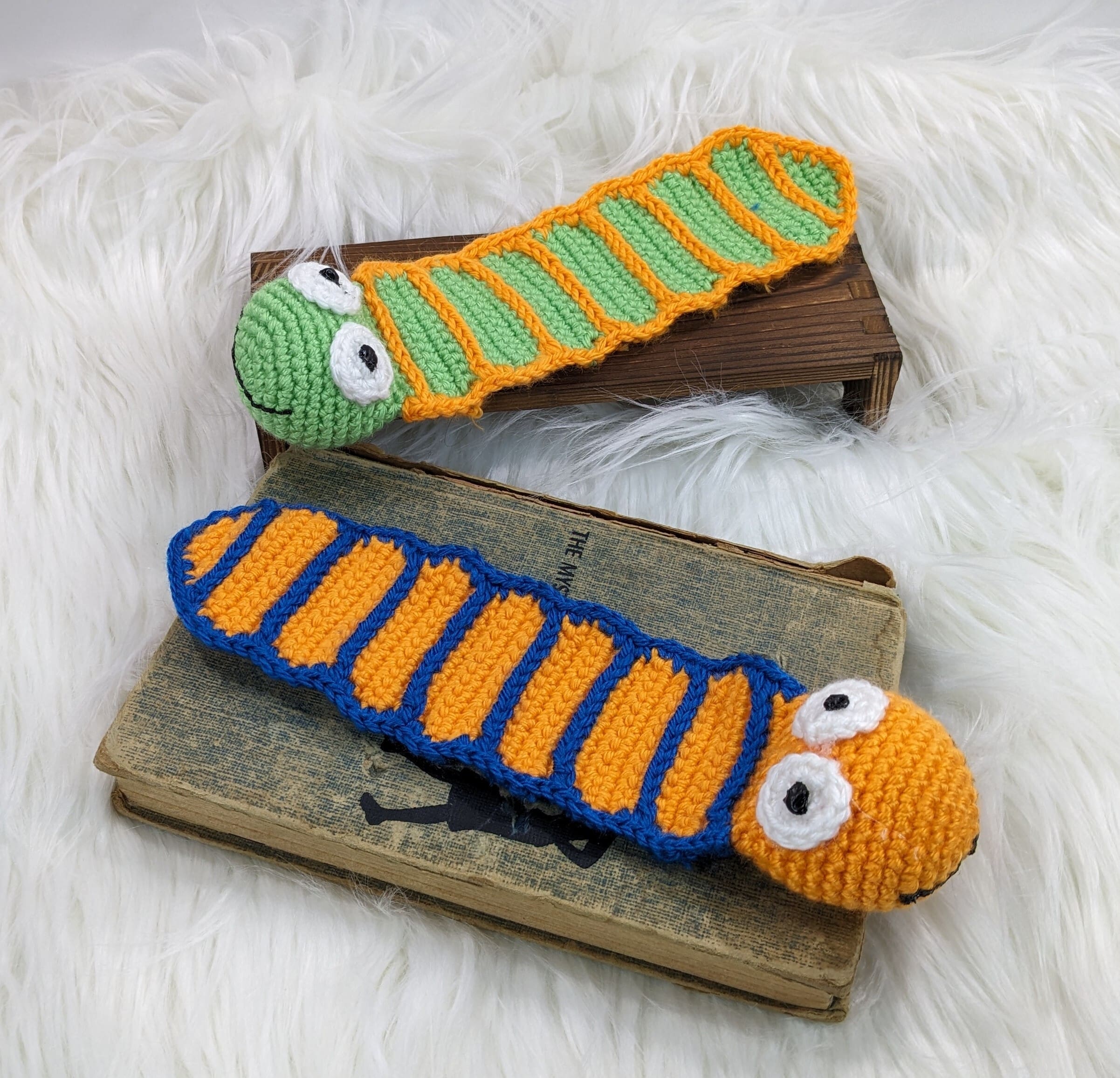 Also Bookworm Crochet Bookworm Set are hand crochet with acrylic yarn and filled with a small amount of fiberfill. I also used plastic safety eyes , which are not recommended for children 3 and under.