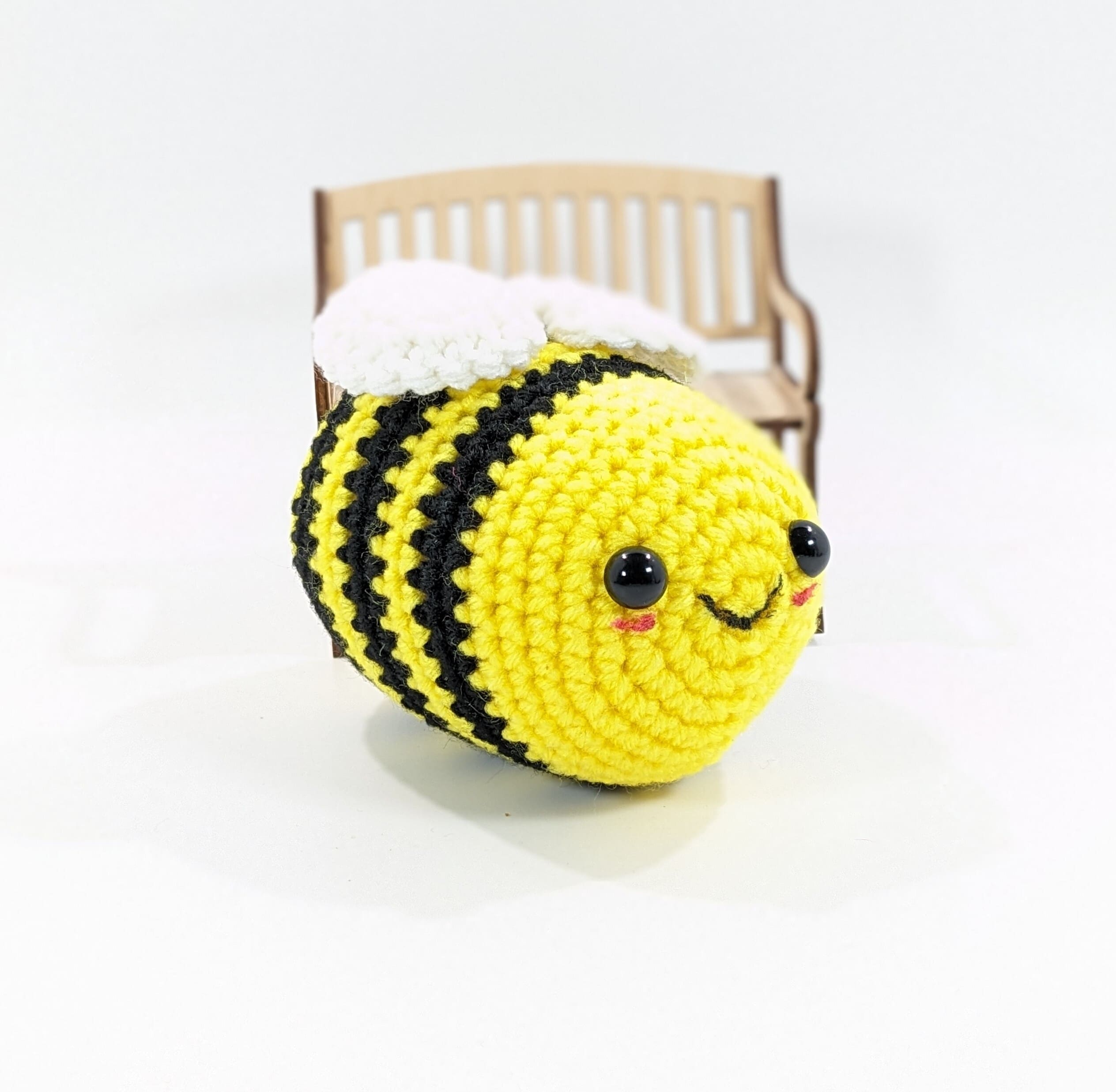 Also each Bumblebee Plush Crochet Toy is hand crochet with acrylic yarn and filled with a polyester fiberfill. This toy also has plastic safety eyes which are not recommended for children 3 and under. You can have crochet eyes made for younger children.