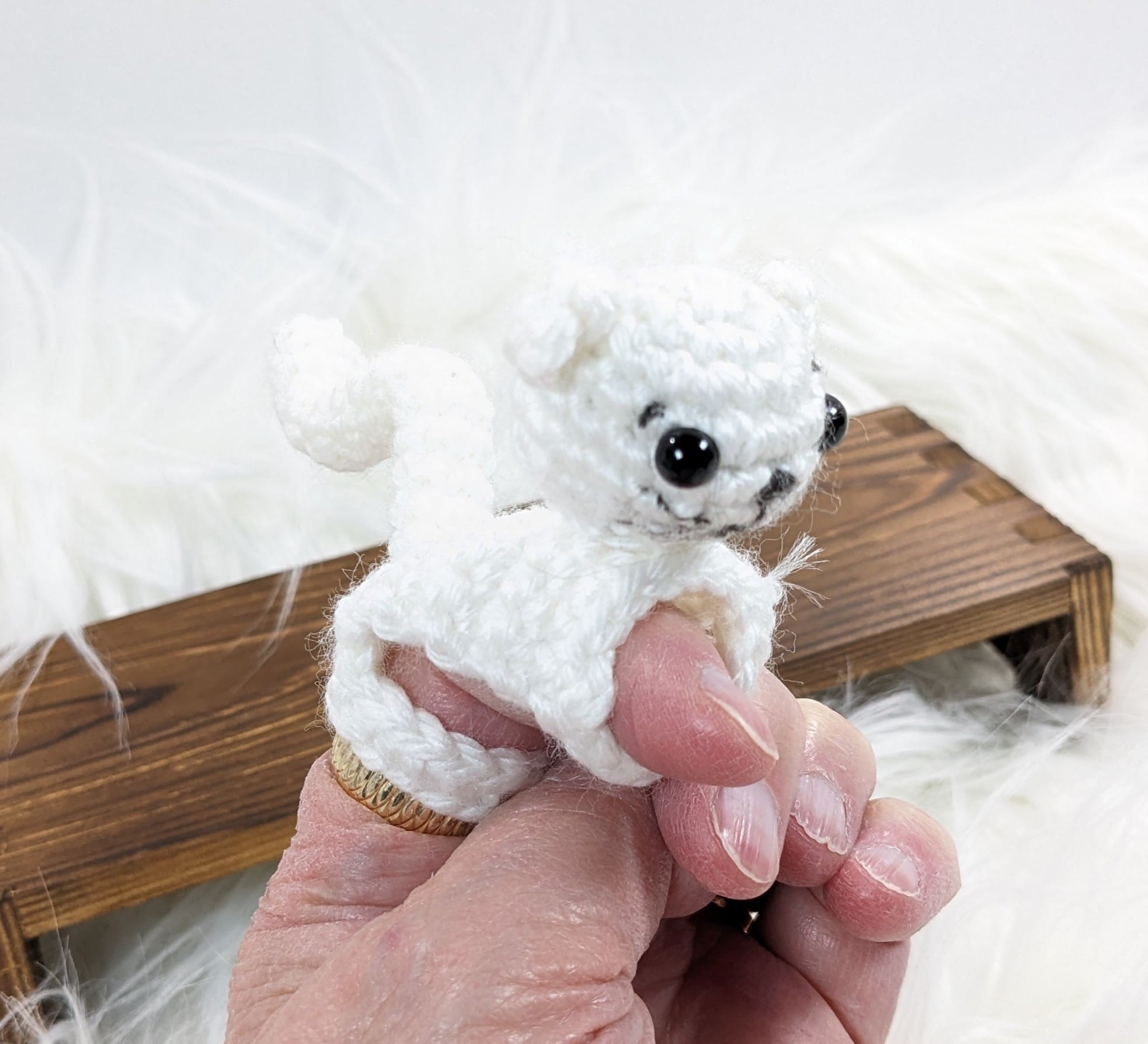 Cat Crochet Finger Puppet Pet. This tiny cat slips right onto your finger. Also a fun toy for any child. You can get him made in almost any color. Also, I recommend this tiny cat for children 4 and up. You can get one in grey or white at checkout. Visit my shop for more cat themed items.