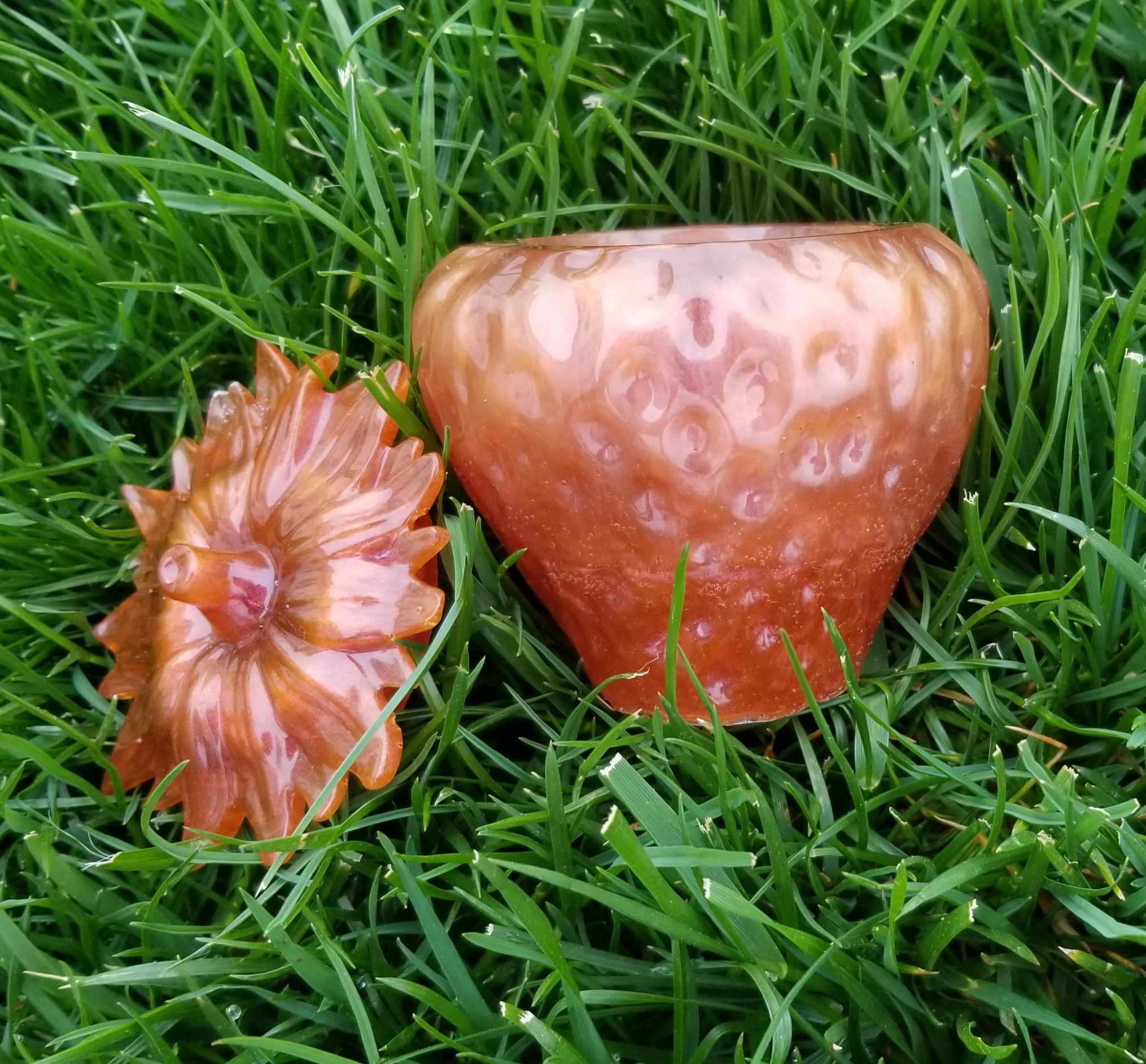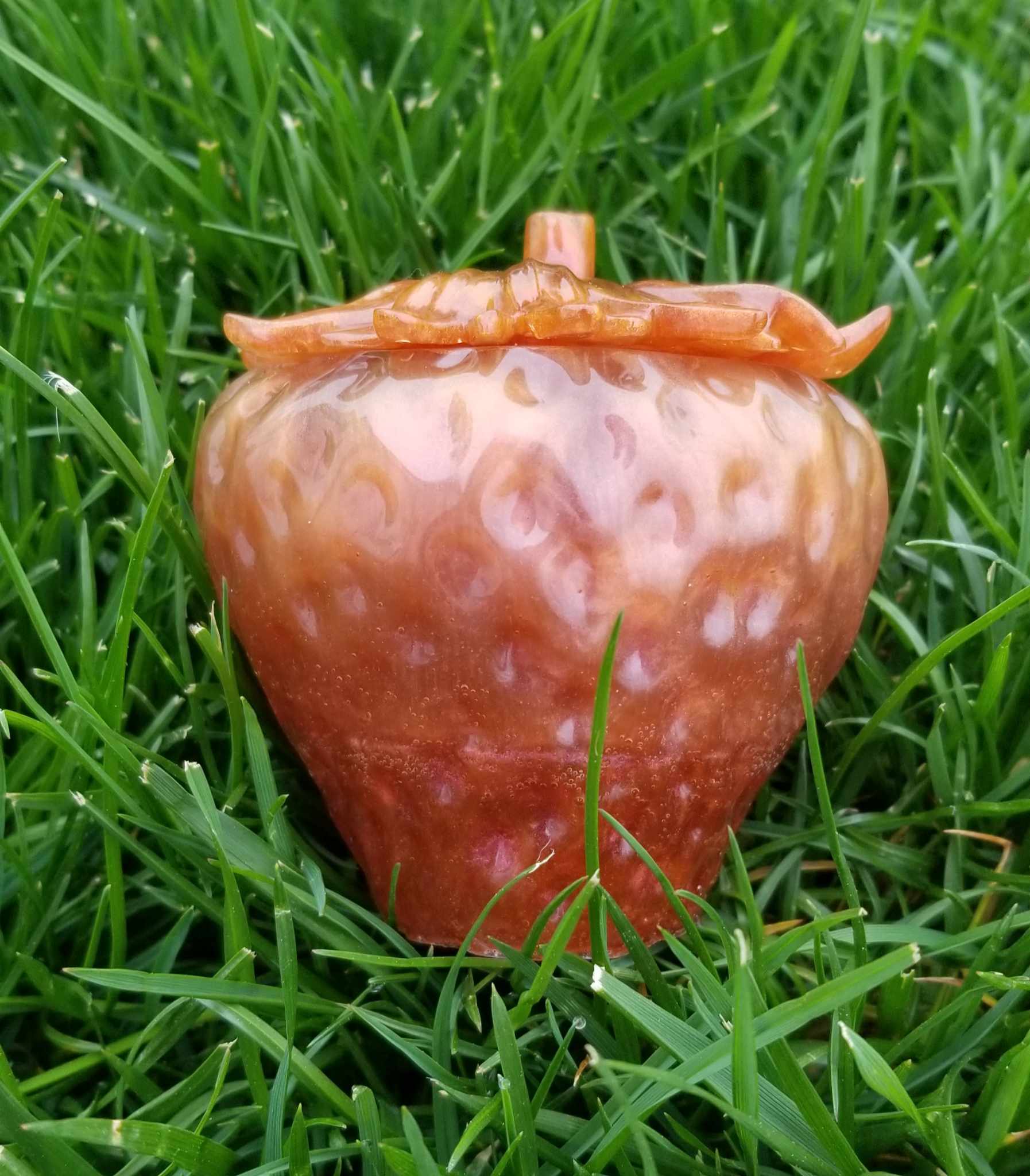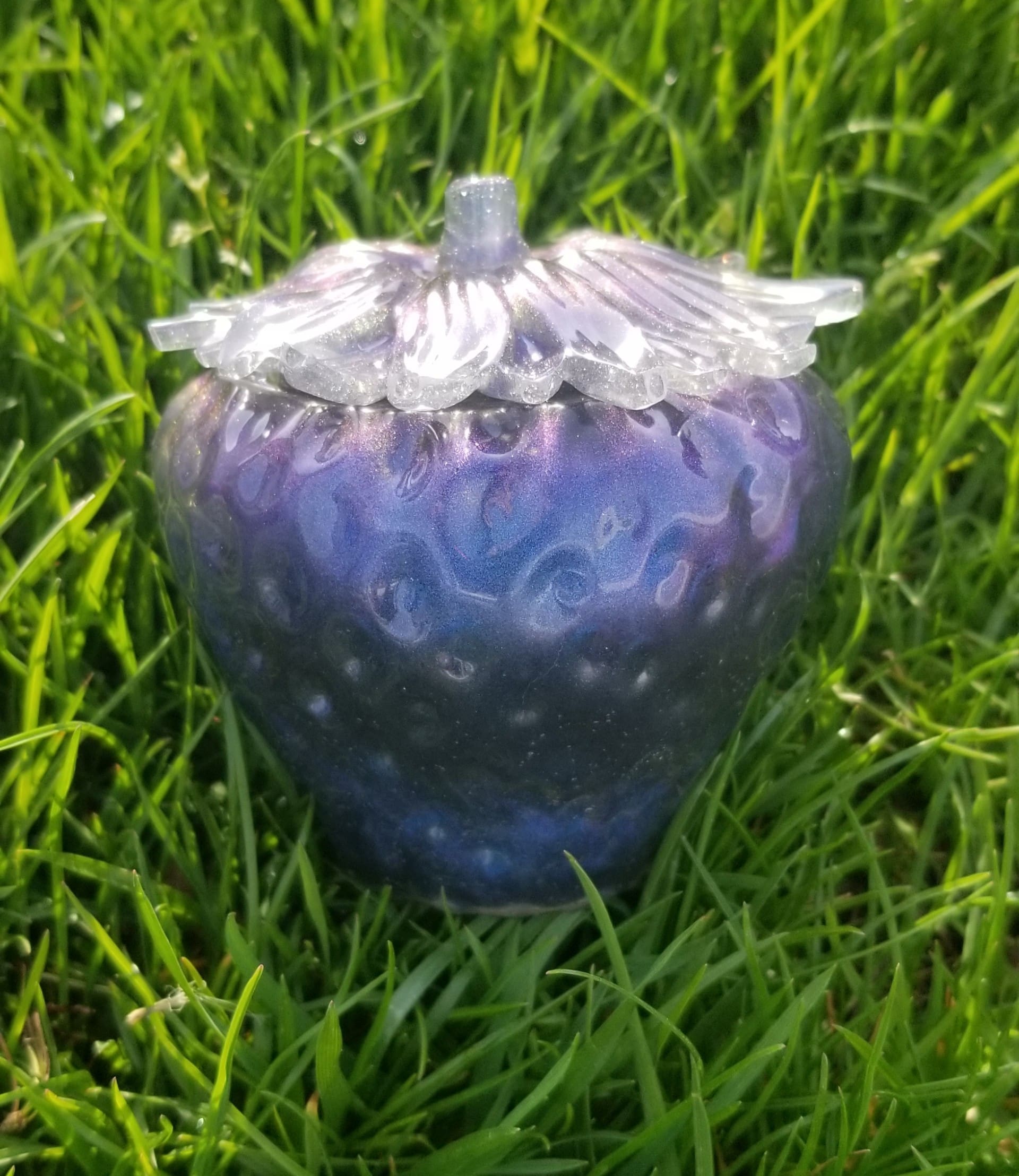 Strawberry base is made with chameleon (color shift) colored resin with a removable matching stem lid.