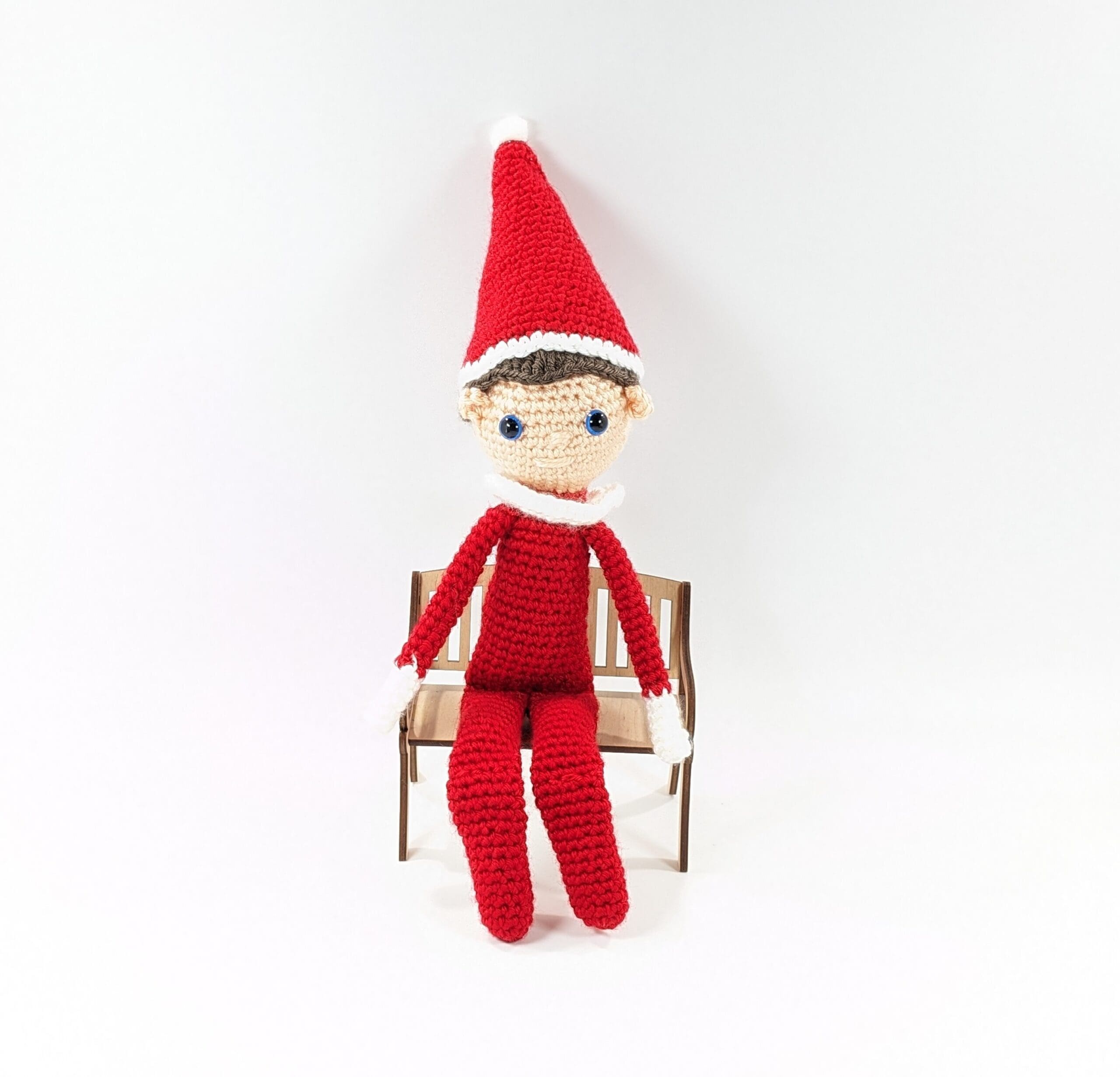 Christmas Elf Crochet Plush Decor. You will love this crochet version of Elf on a Shelf look a like. Also he can sit on a shelf or any item. You can move his arms and legs. Also this cute Elf measures a total of 14 inches from the tip of his hat to his toe. Your child will love him and enjoy joining in on the holiday traditions. Also I will be making one with a skirt and longer hair. You can find a large selection of more holiday decorations in my shop.