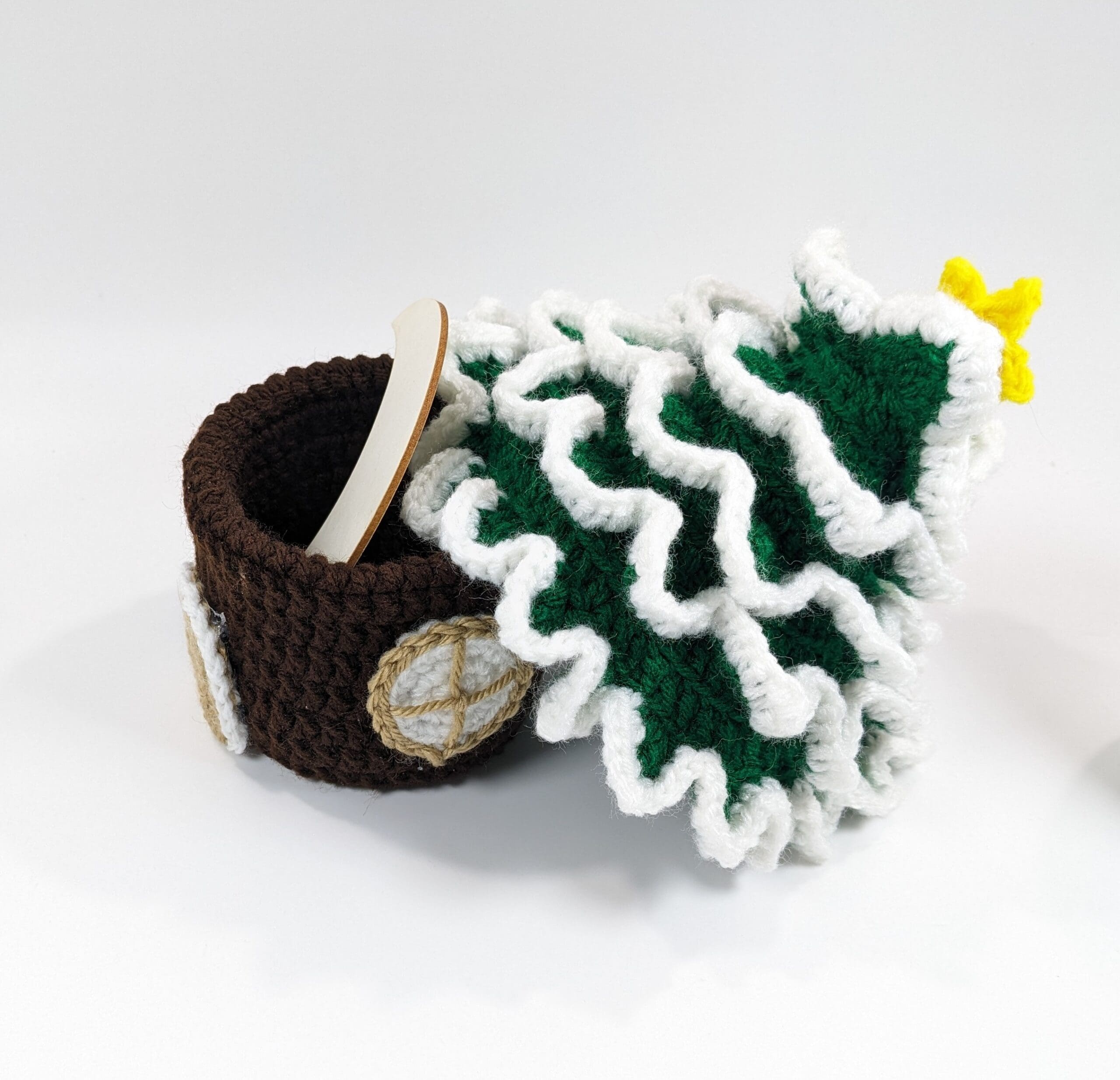 Christmas Tree House Jar. You can use this adorable tree as a decoration or as a small jar. Also the whole tree measures 7 inches tall and 7 inches wide, the jar itself is 3 inches deep. You can fill with candy or trinkets. Also you can find more fun items like this in my shop. You can also decorate your tree with small beads or pompoms.
