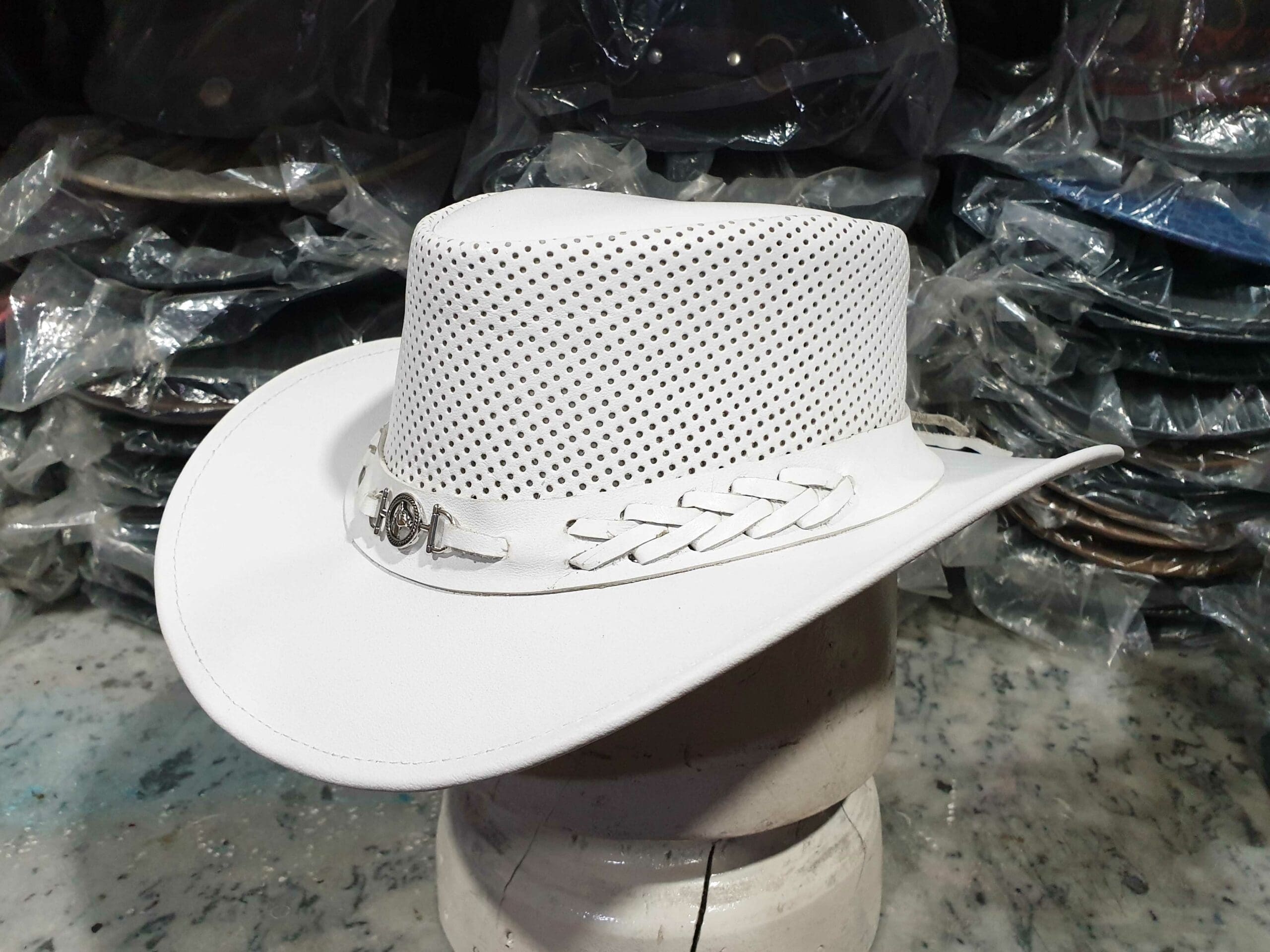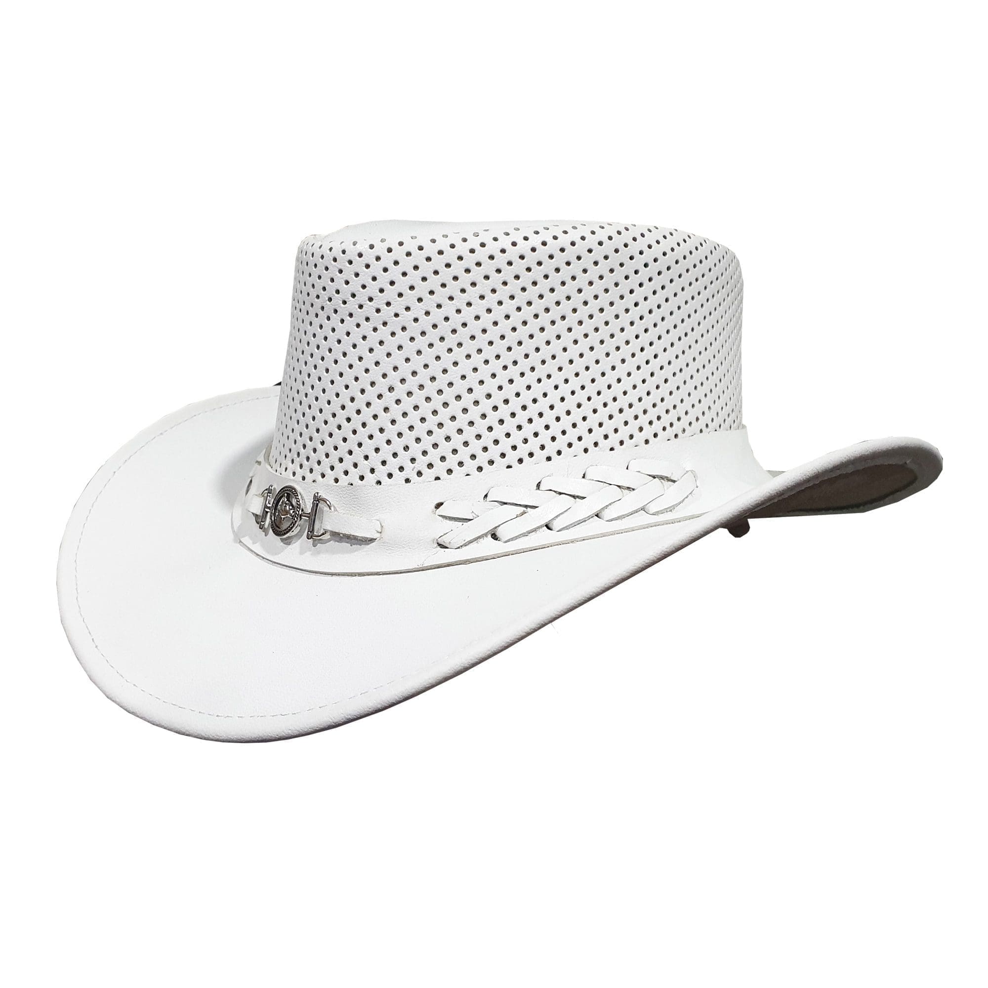 Flat Vented Leather Mesh Crown. Semi Braided Leather Hat Band.