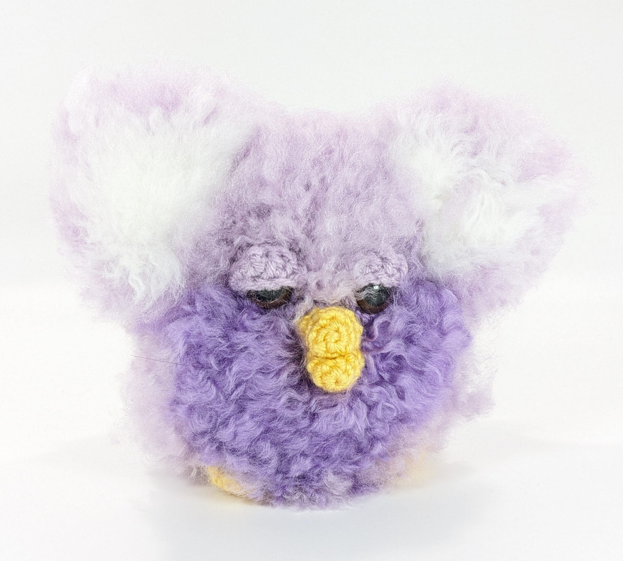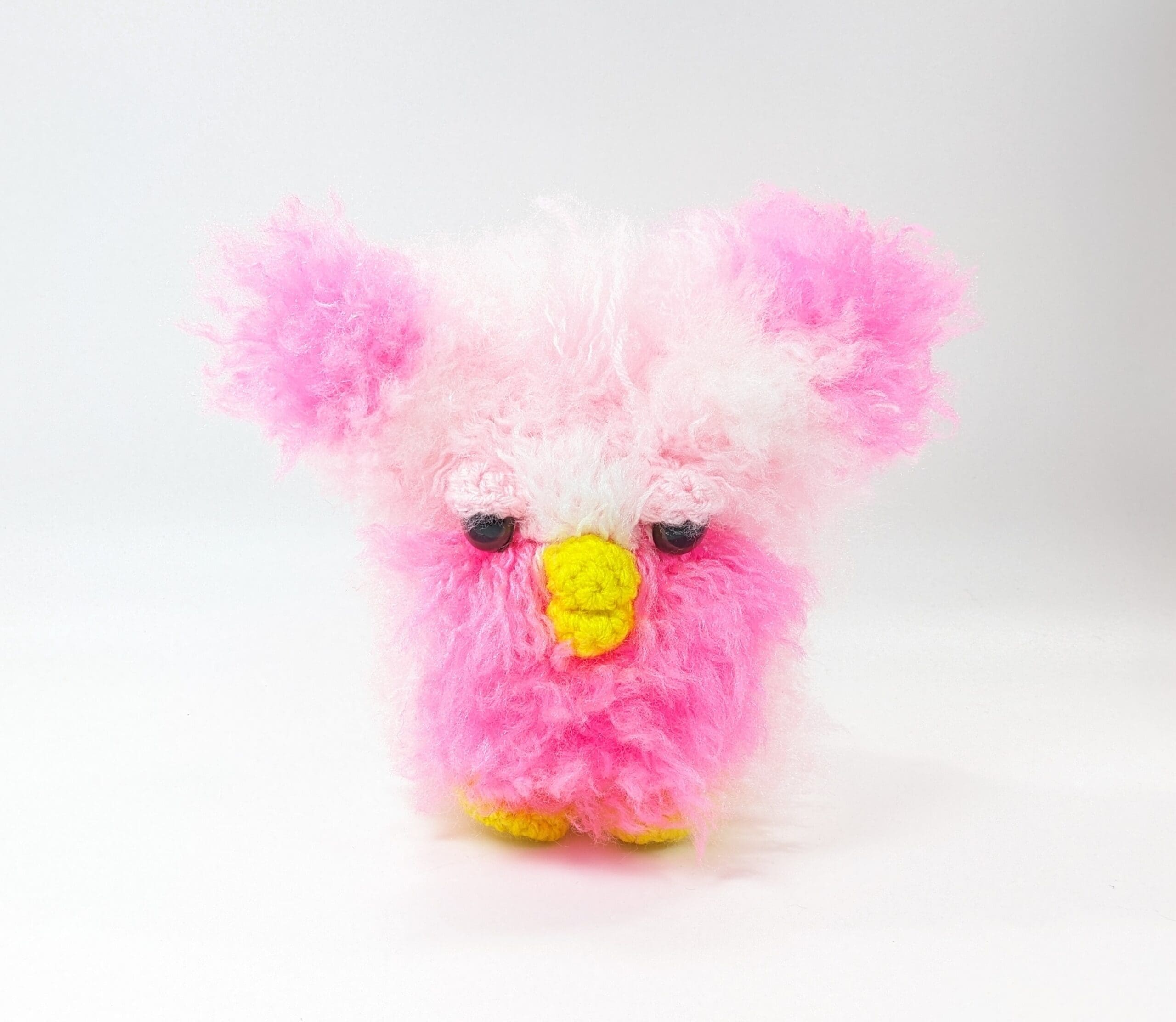 Crochet Pink Plush Fur-pet . You get this adorable Crochet Pink Plush Fur-pet which is hand crochet to look like a Furby. Also I will be adding different color Fur-pets to my shop as often as I can. You can message me if there is a combination of colors you would like made for your Fur-pet. Crochet Pink Plush Fur-pet can be made in Blue, Green or purple. Your Fur-pet has a crochet body with all fur hooked in place and carefully brushed to his fluffy fur.