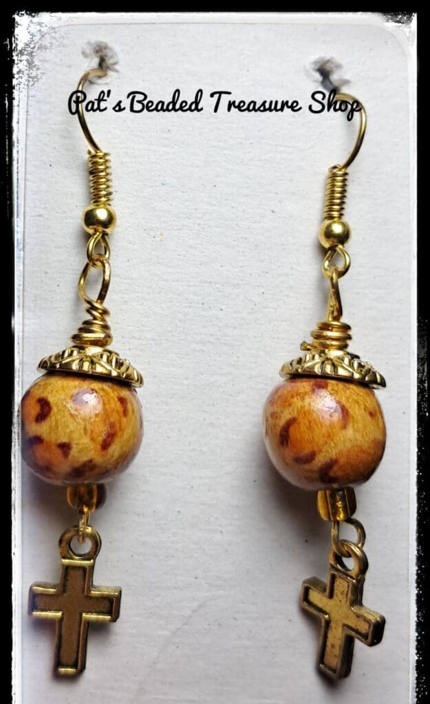 These Golden Cross and Wood Bead Dangle Earrings blend warm natural wood with gold tone accents to create a handcrafted style that feels meaningful and easy to wear. Lightweight and comfortable, they add a soft handcrafted charm to everyday outfits. A lovely choice for gift giving, daily accessorizing or faith inspired jewelry collections.