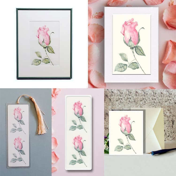 Specification: Delicate Pink Rose Bud Limited Edition Watercolor Fine Art Gift Set