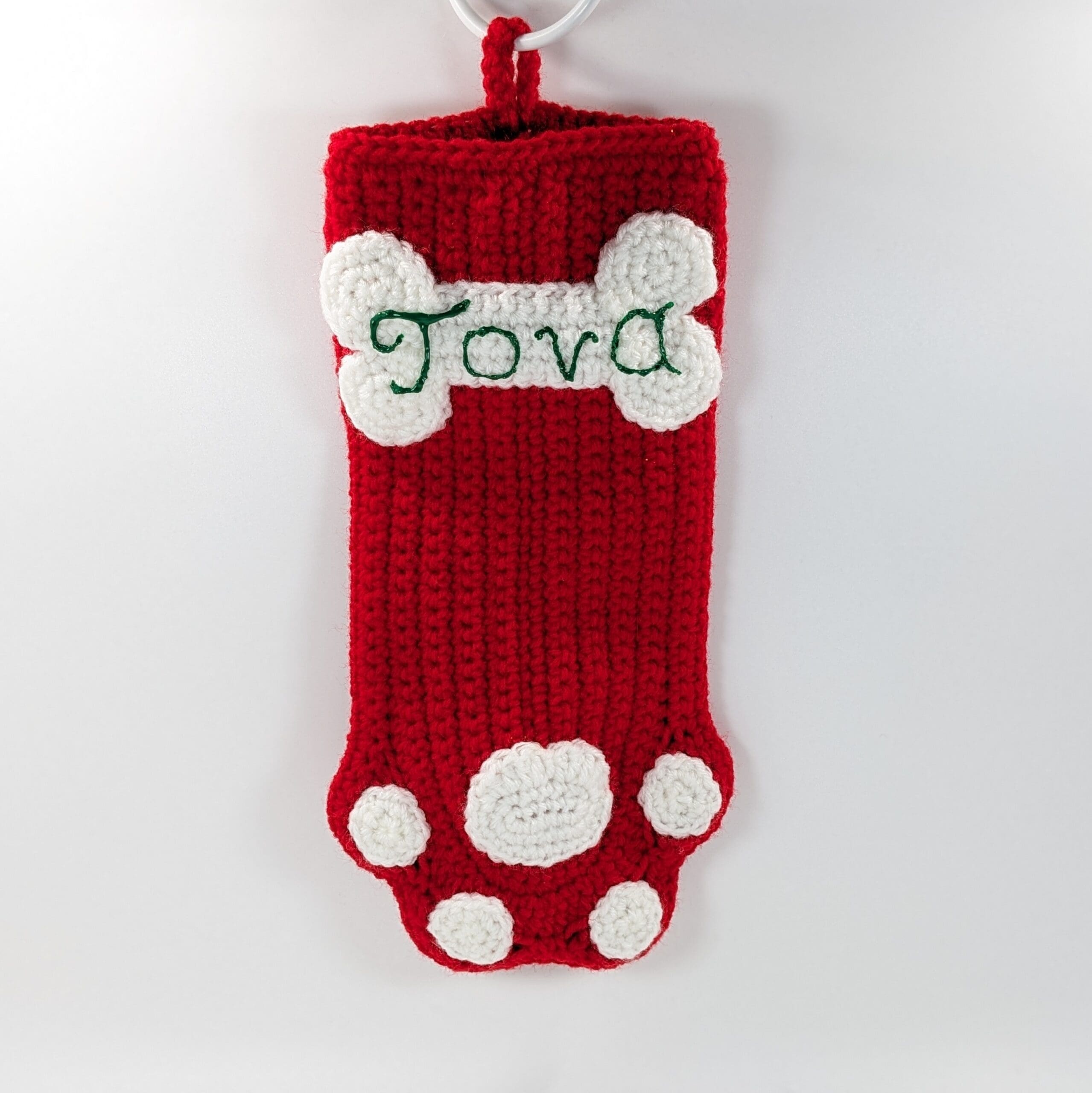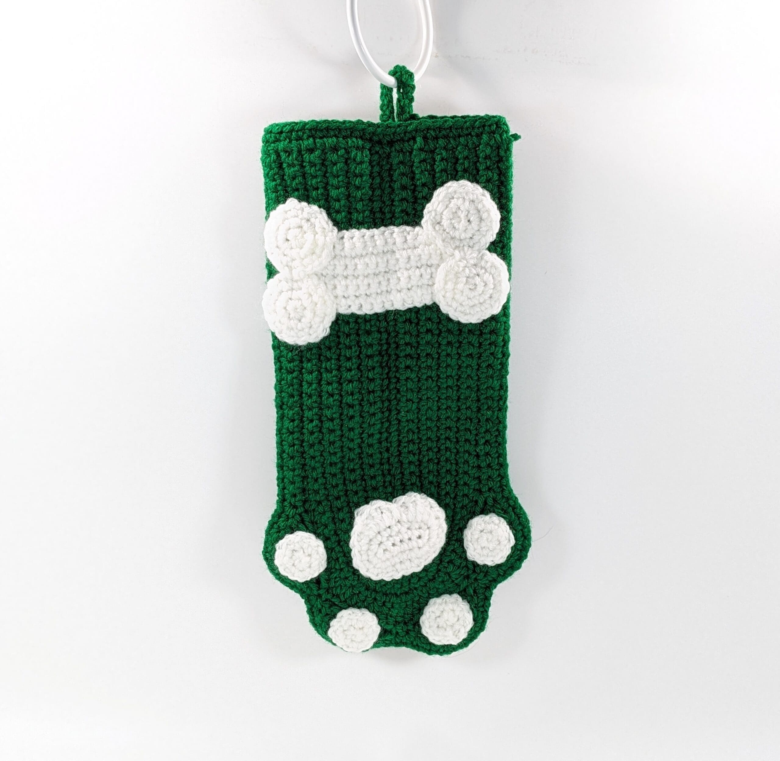 Dog Stocking Crochet Christmas Decor. You get this adorable green stocking for your fur baby for Christmas. Also this stocking measures 11 inches deep. You can fit a toy and some fun snacks for Christmas. Also you can have your dogs name put on, I use fabric paint (the more letters the smaller the print will be). You can find a fun selection of Christmas and holiday decor in my shop, link below.