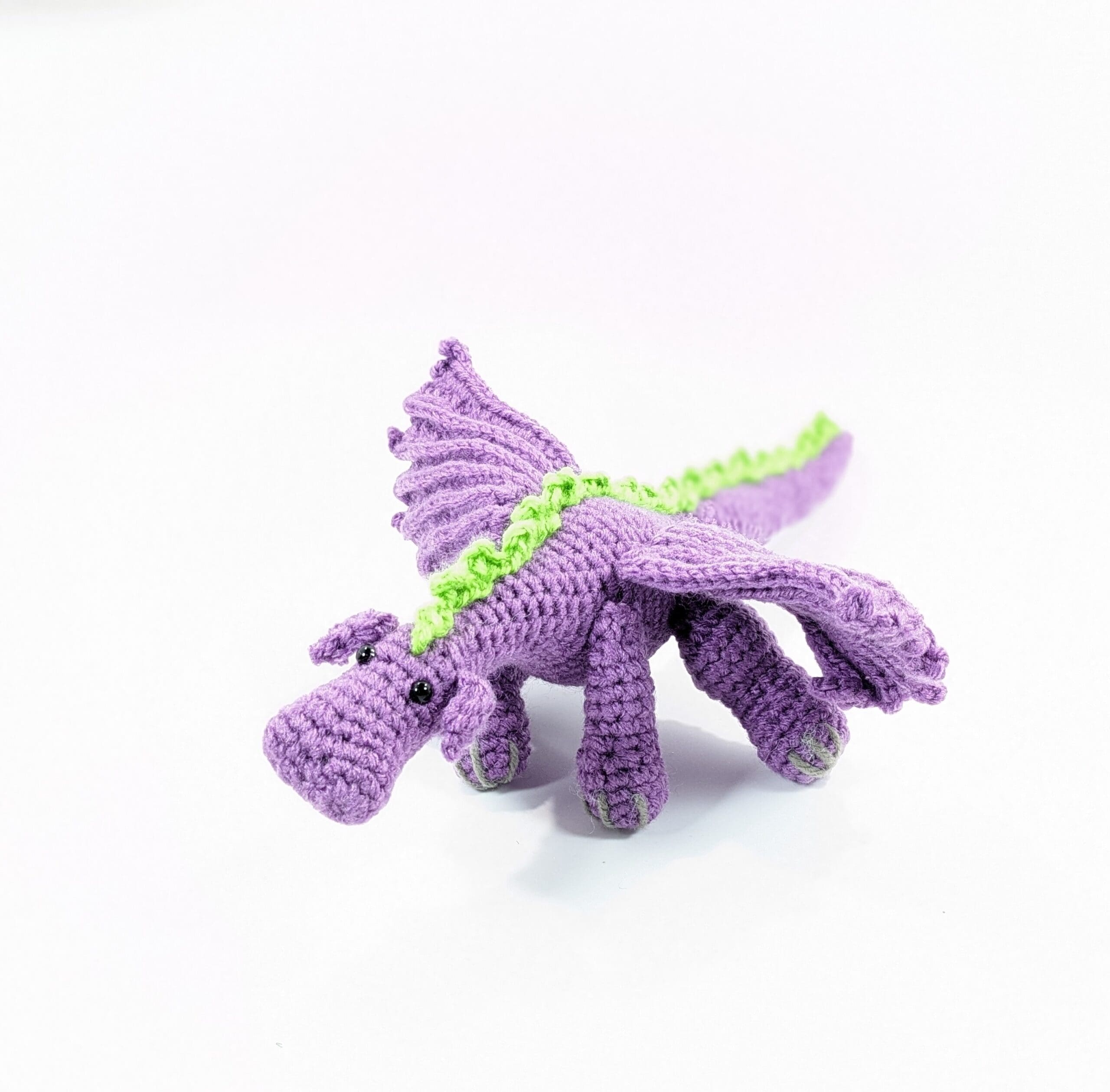 Dragon Crochet Plush Toy. You will love this cute plush dragon for your child or as a gift. Also he measures 13″ long and has plastic safety eyes (not recommended for children 3 and under). You can find this same dragon in my shop with safety eyes in place of embroidered eyes. Also you can have a dragon made with your child’s favorite colors. You can also find a selection of more toys in my shop.