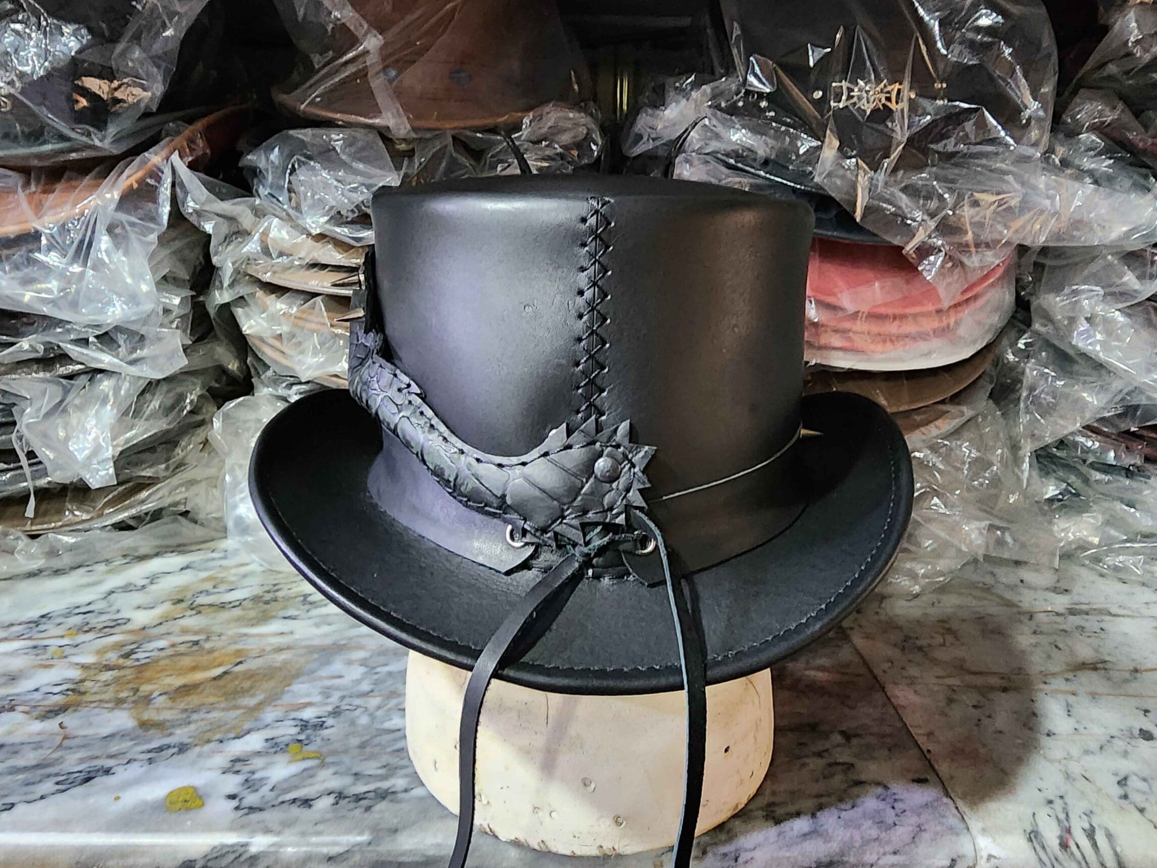 Dragon Of Darkness Leather Top Hat.