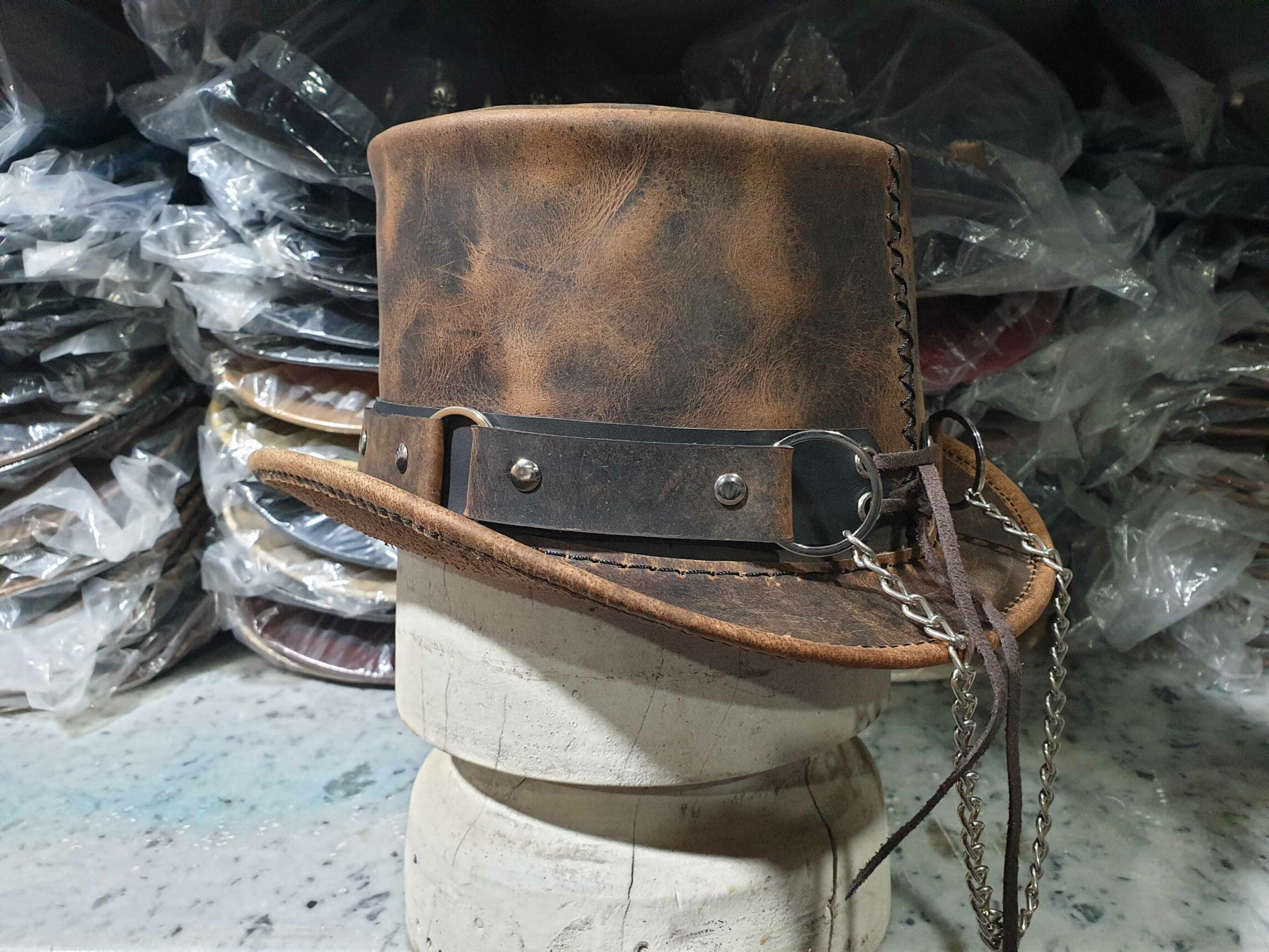 Crafted from premium waxed treated leather, this top hat offers durability and a luxurious feel, ensuring it stands the test of time.