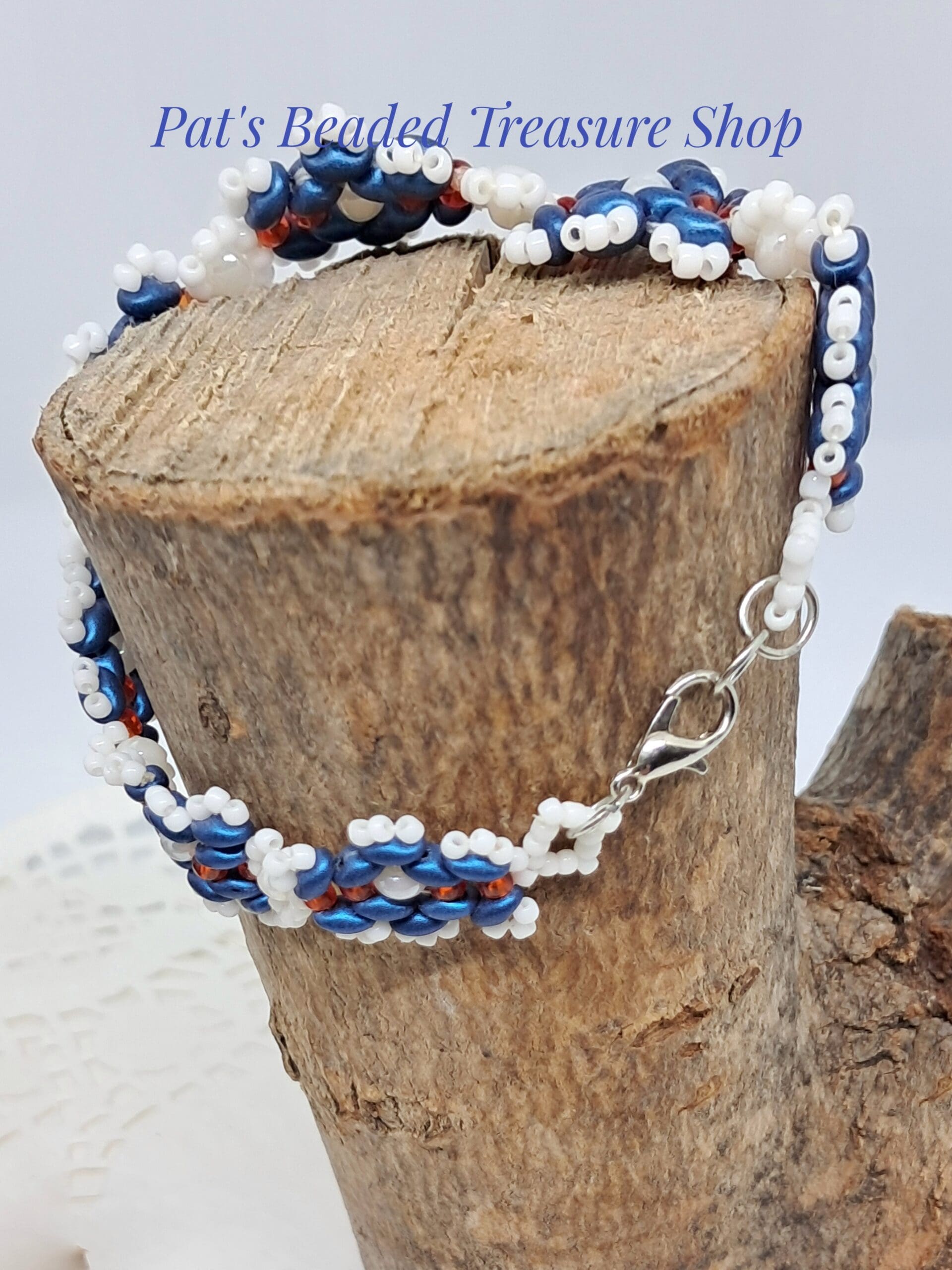 #HandmadeBracelet #BeadedBracelet #BlueBracelet #UniqueJewelry #HandmadeJewelry #SeedBeadBracelet #JewelryGift #ElegantStyle # RedWhiteBlue #PatBeadedTreasureShop #EverydayElegance #BohoJewelry #JewelryLovers#Pat’sBeadedTreasure Shop