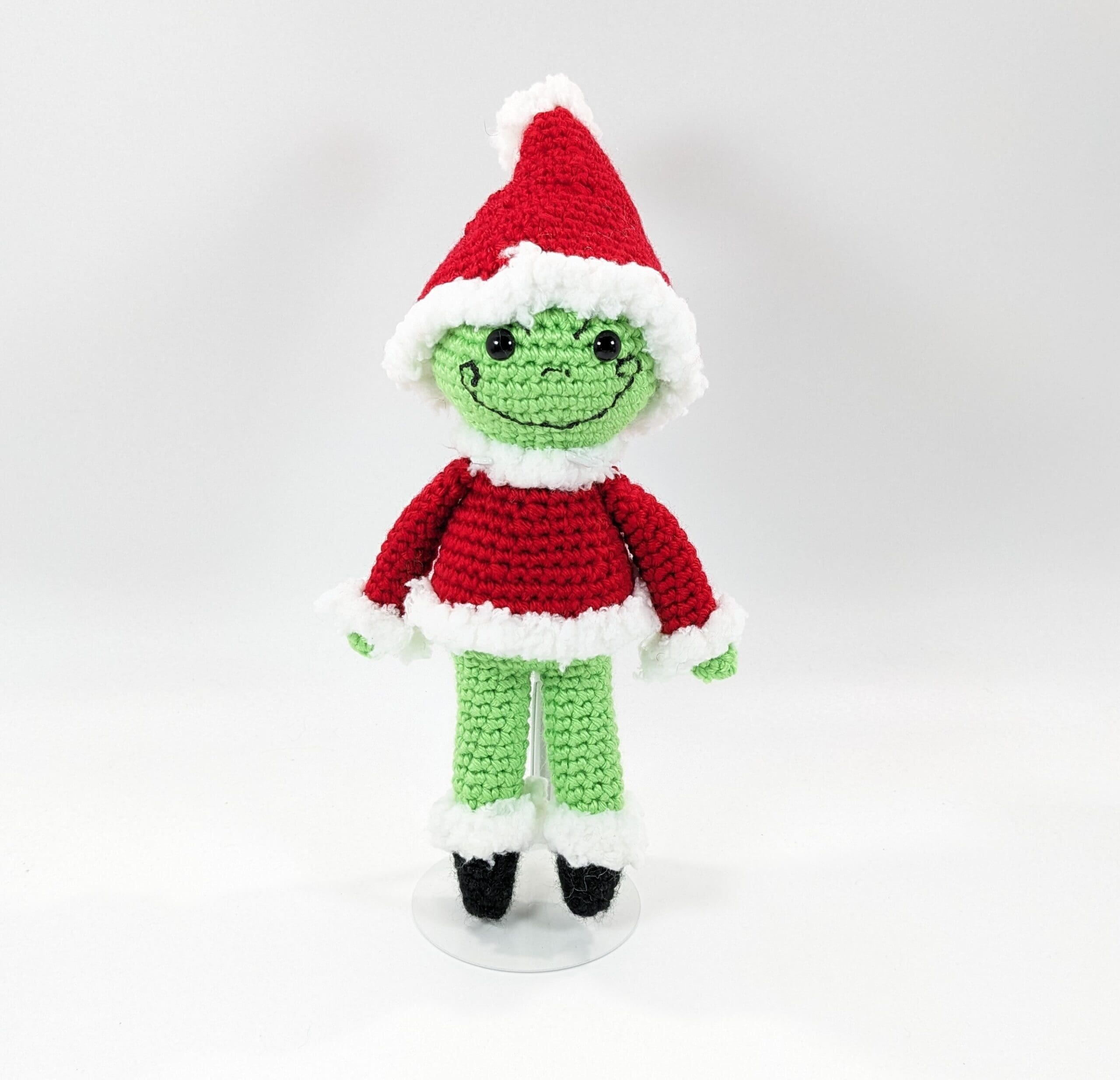 Also this cute Elf Grumpy Crochet Christmas Doll is crochet with acrylic yarn and filled with a polyester fiberfill. He also has plastic safety eyes which are not recommended for children 4 and under.
