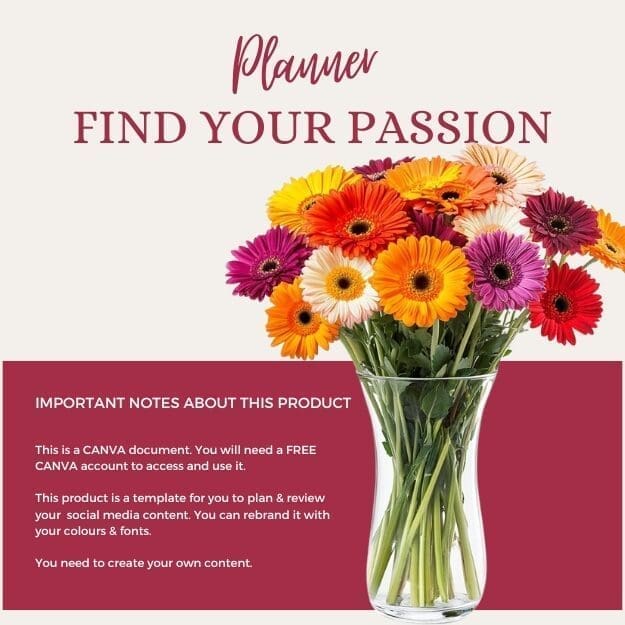 Find Your Passion Planner is a 20-page life purpose workbook designed to help you discover your true calling, clarify your career path, and strengthen your mindset. Whether you’re an entrepreneur, coach, or someone on a self-development journey, this printable and editable Canva planner guides you through exercises that bring clarity and purpose to your life.