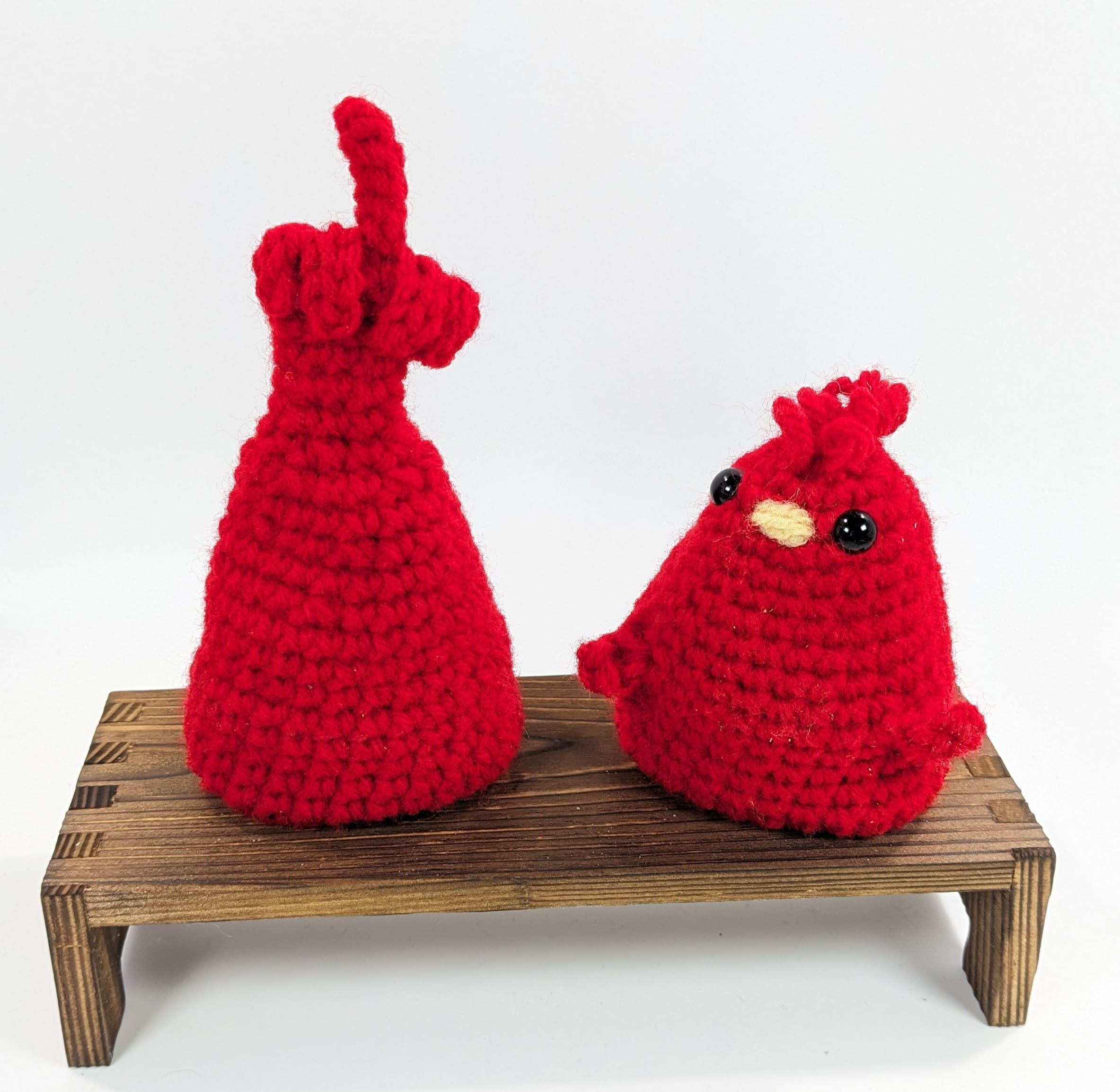 Akso each Flipping Bird Novelty Adult Decor is crochet with acrylic yarn and has tiny plastic eyes.