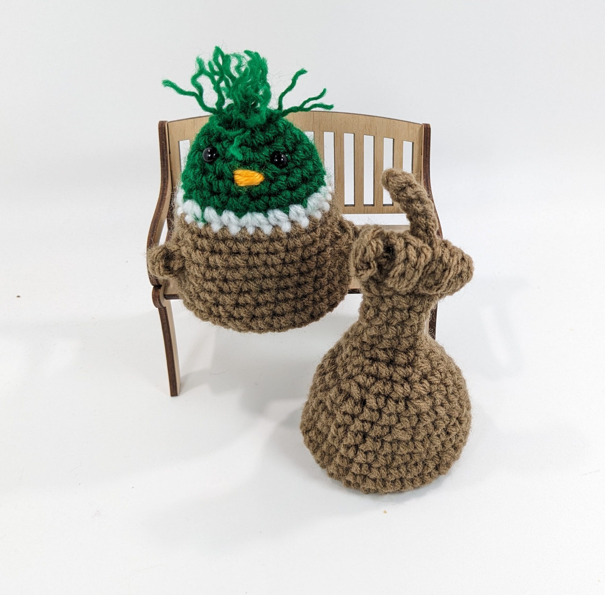 Akso each Flipping Farm Bird Novelty Adult Decor is crochet with acrylic yarn and has tiny plastic eyes.