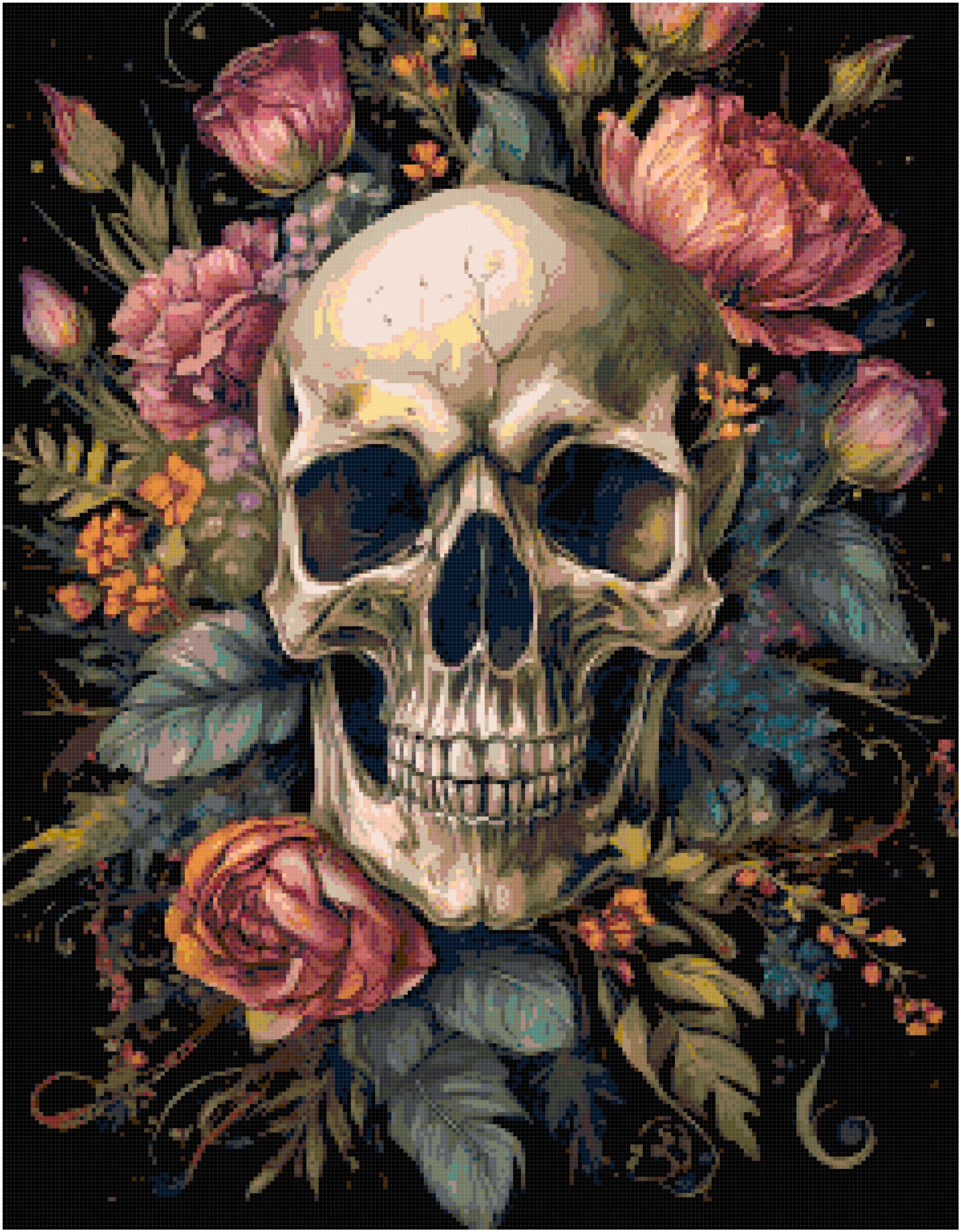 Floral Skull Wreath Cross Stitch Pattern, Full Coverage (Instant Download)