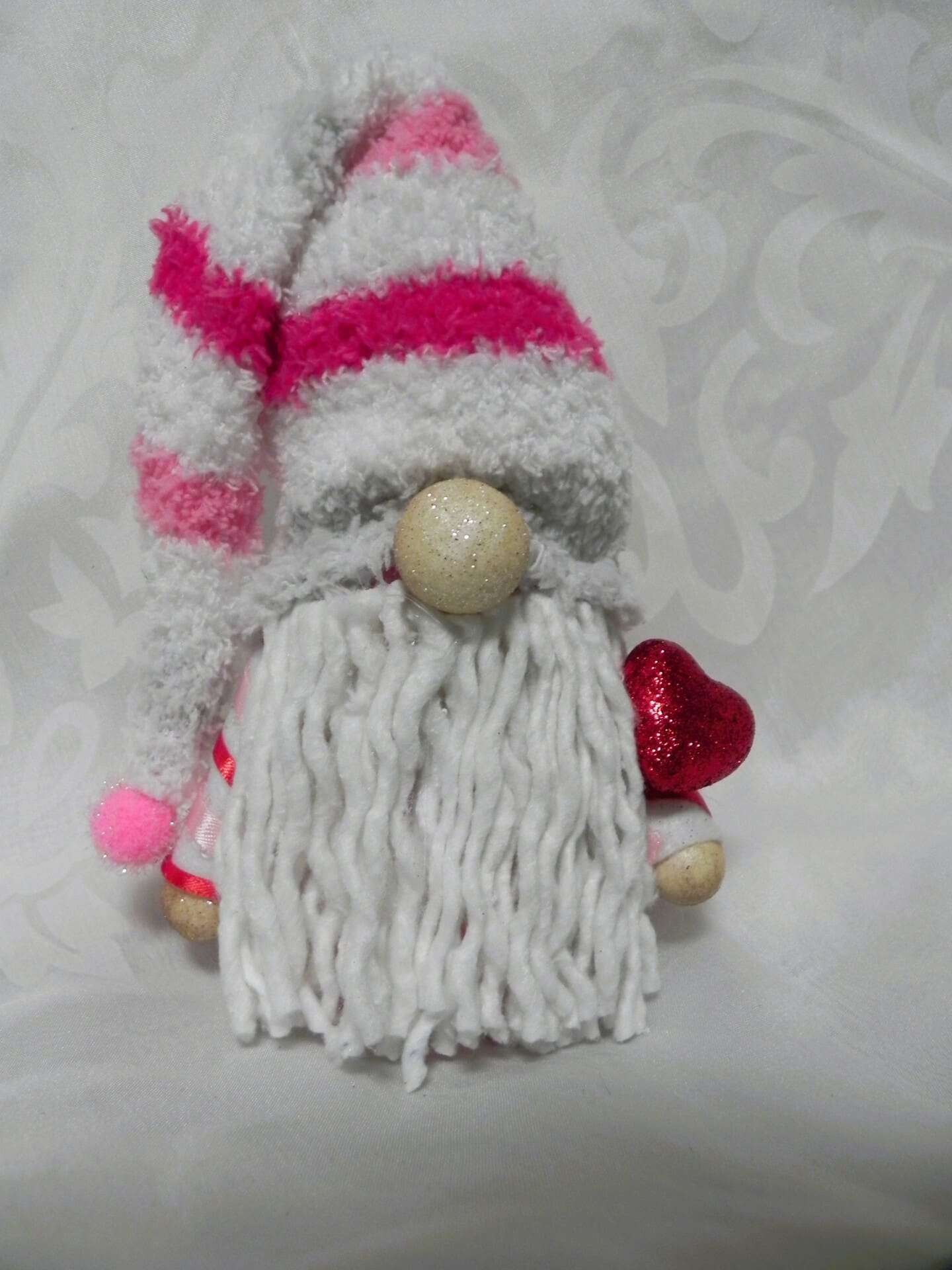 Stripey Gnome is wearing his heart on his sleeve and is ready to make you smile!