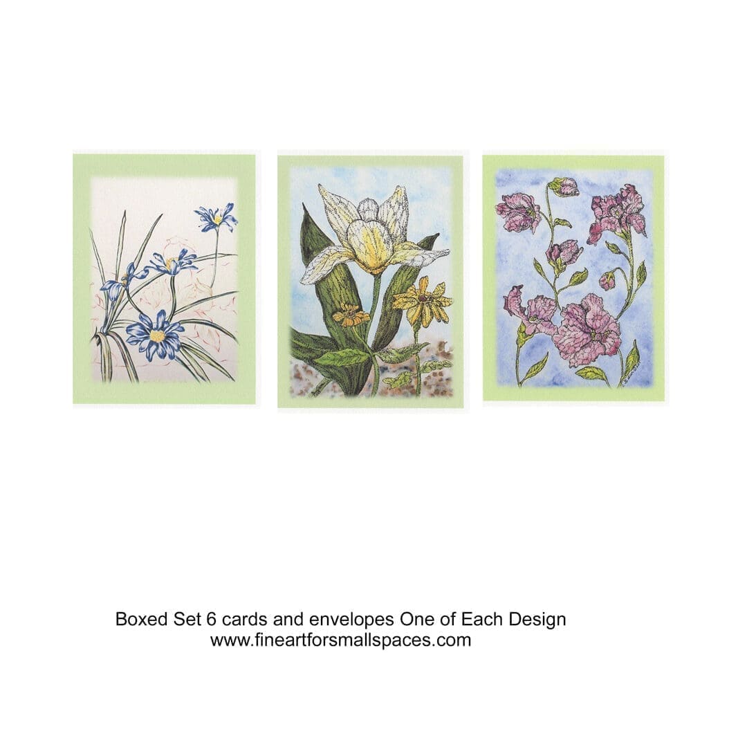 Garden Flowers Watercolor Floral Art Note Card Boxed Set of 6 with envelopes CLEARANCE Limited Stock