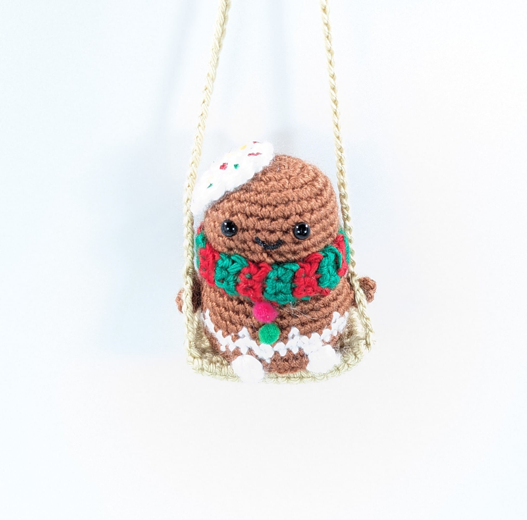 Gingerbread Man Car/Home. You can hang this adorable Gingerbread Man on his swing from your rear view mirror. Also you can hang him in any room of your home. A fun little decoration for the holiday. You can find many more holiday and seasonal decor for your car or home in my shop.