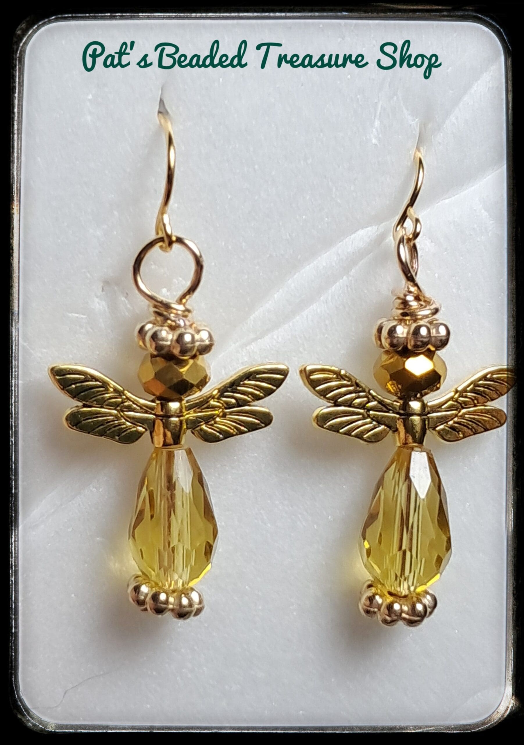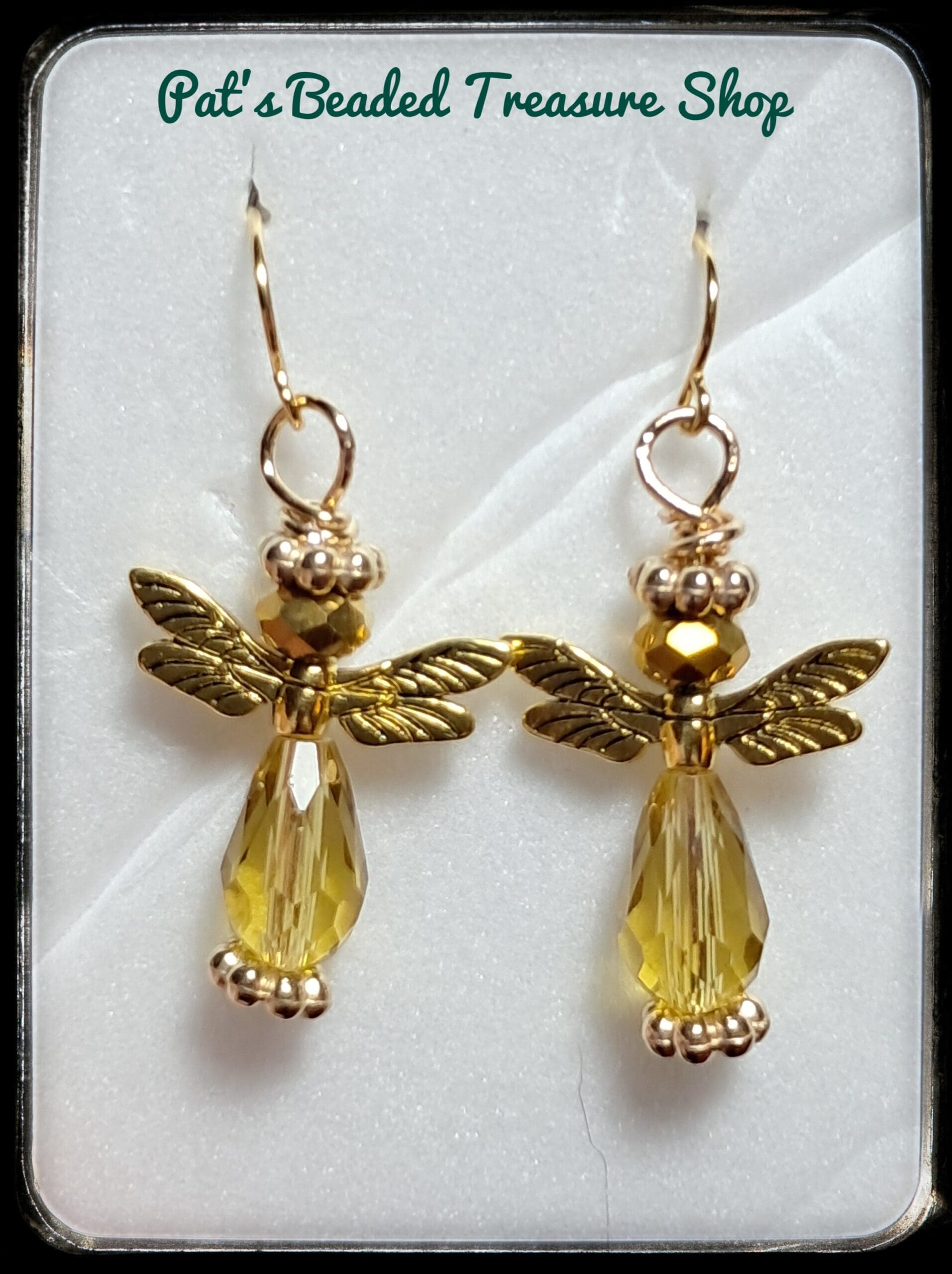 #AngelsInGold #GoldenAngelEarrings #HandmadeJewelry #BeadedEarrings #PatBeadedTreasureShop #HolidayStyle #EverydayWearJewelry #GiftForHer #ChristmasJewelry #GoldenGlow
