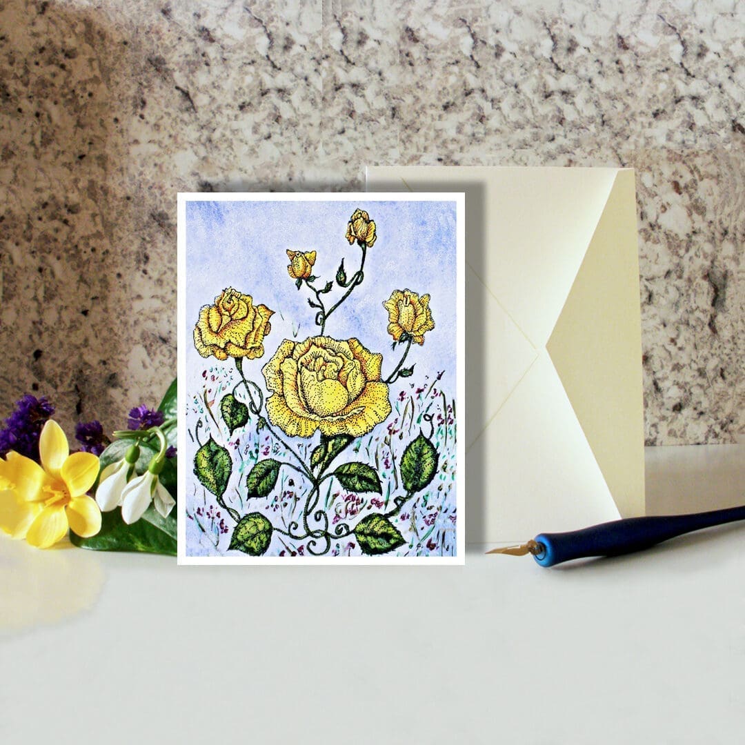 This elegant greeting card features a stunning design of golden roses and floral art. It is perfect for any occasion and will impress and delight your loved ones with its beauty. Give the gift of heartfelt sentiment with the Golden Roses Floral Art Greeting Card.