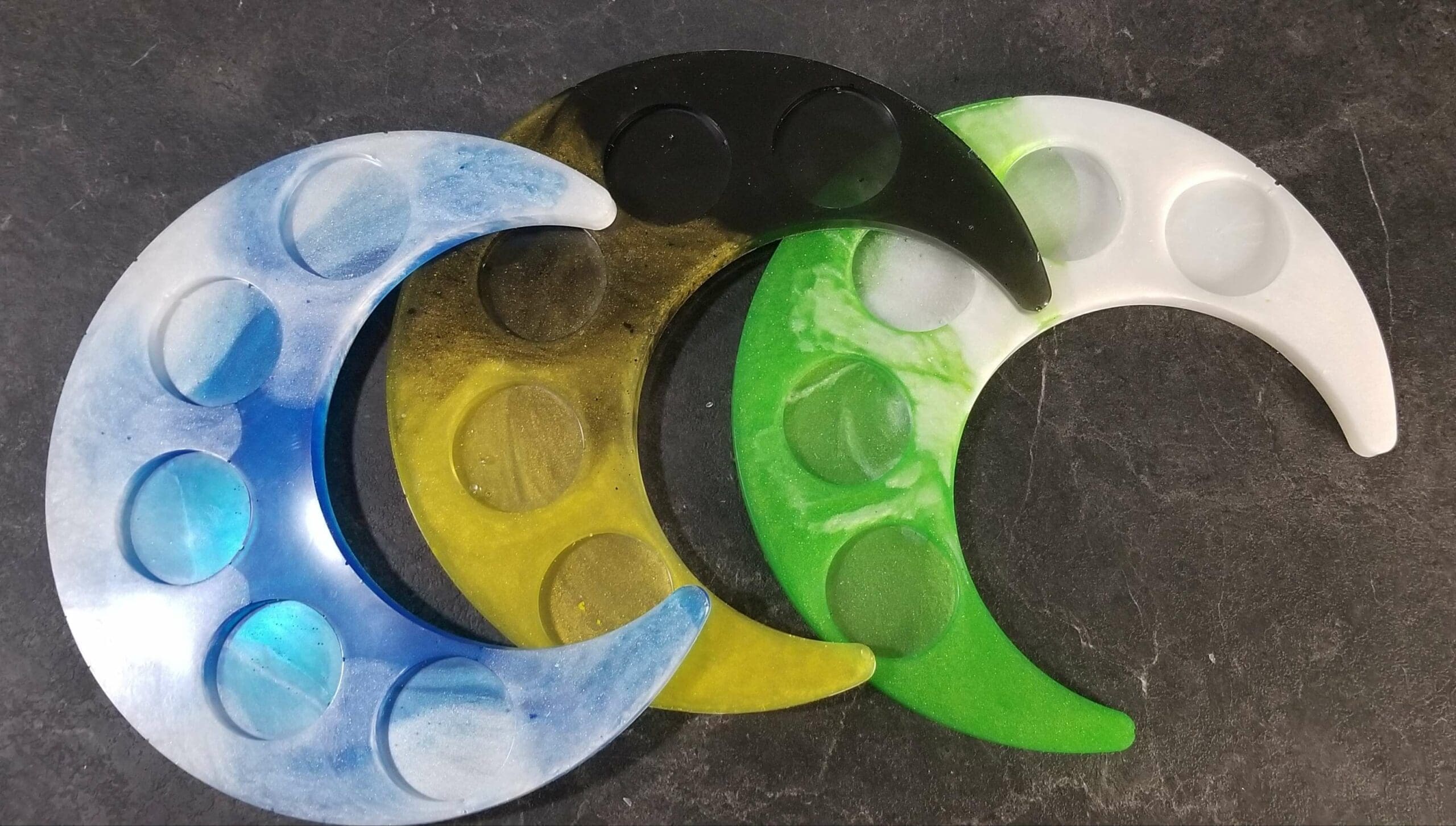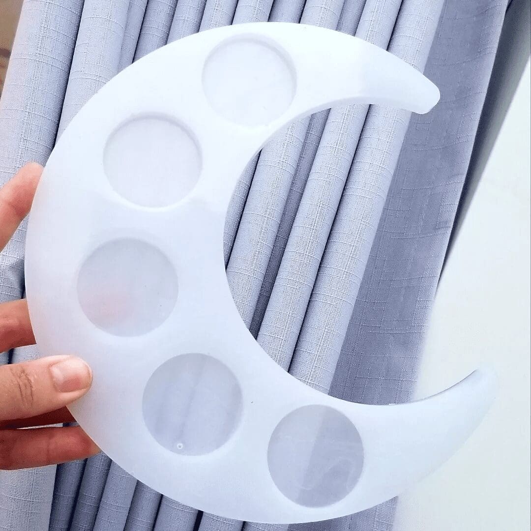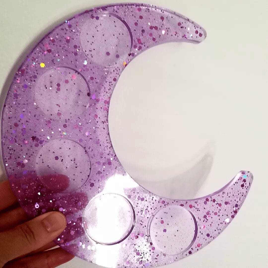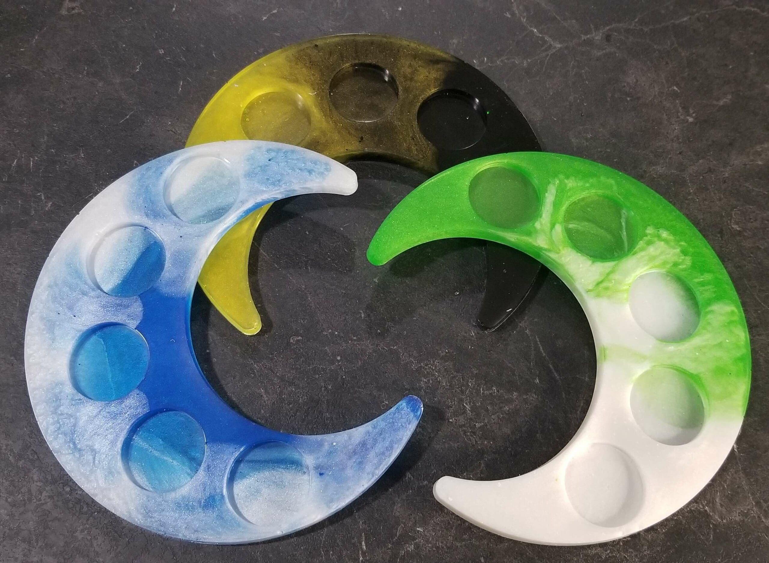 Half-moon shaped resin shot glass tray or use it as a votive candle display tray!
