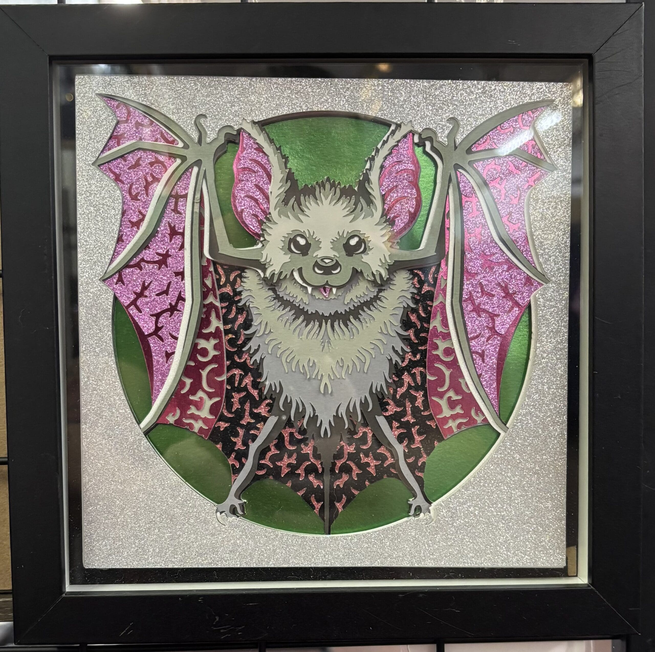 This bat shadow box works well as gothic wall art, Halloween wall decor, or a statement piece in a home office, bedroom, or entryway. It appeals to fans of bats, gothic artwork, and unique handmade decor that feels intentional rather than mass produced. The layered construction creates visual depth that standard wall art cannot replicate, making this piece a true focal point.