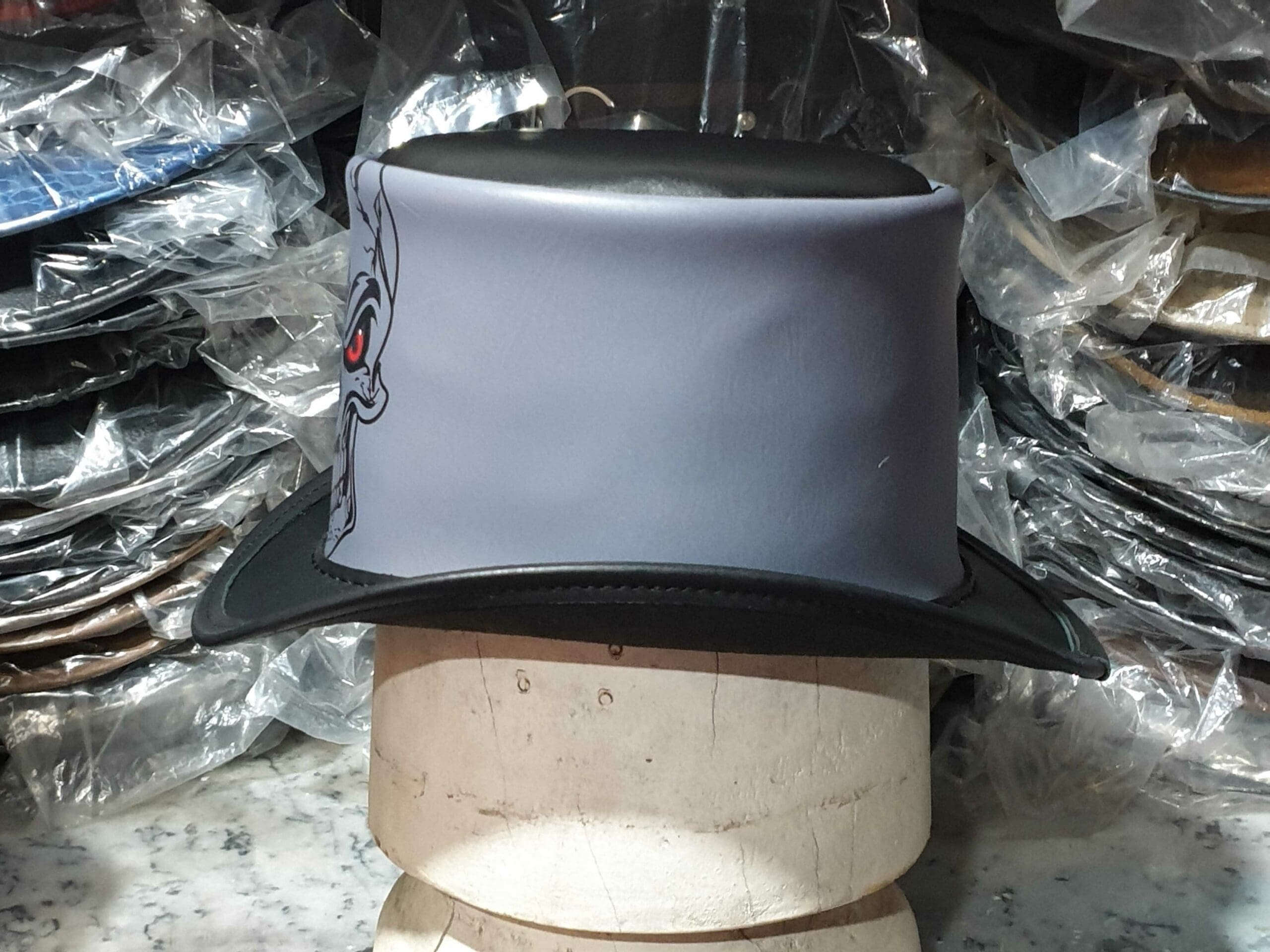 Introducing the epitome of edgy sophistication, the Red Eye Gothic Laser printed Skull black leather top hat.