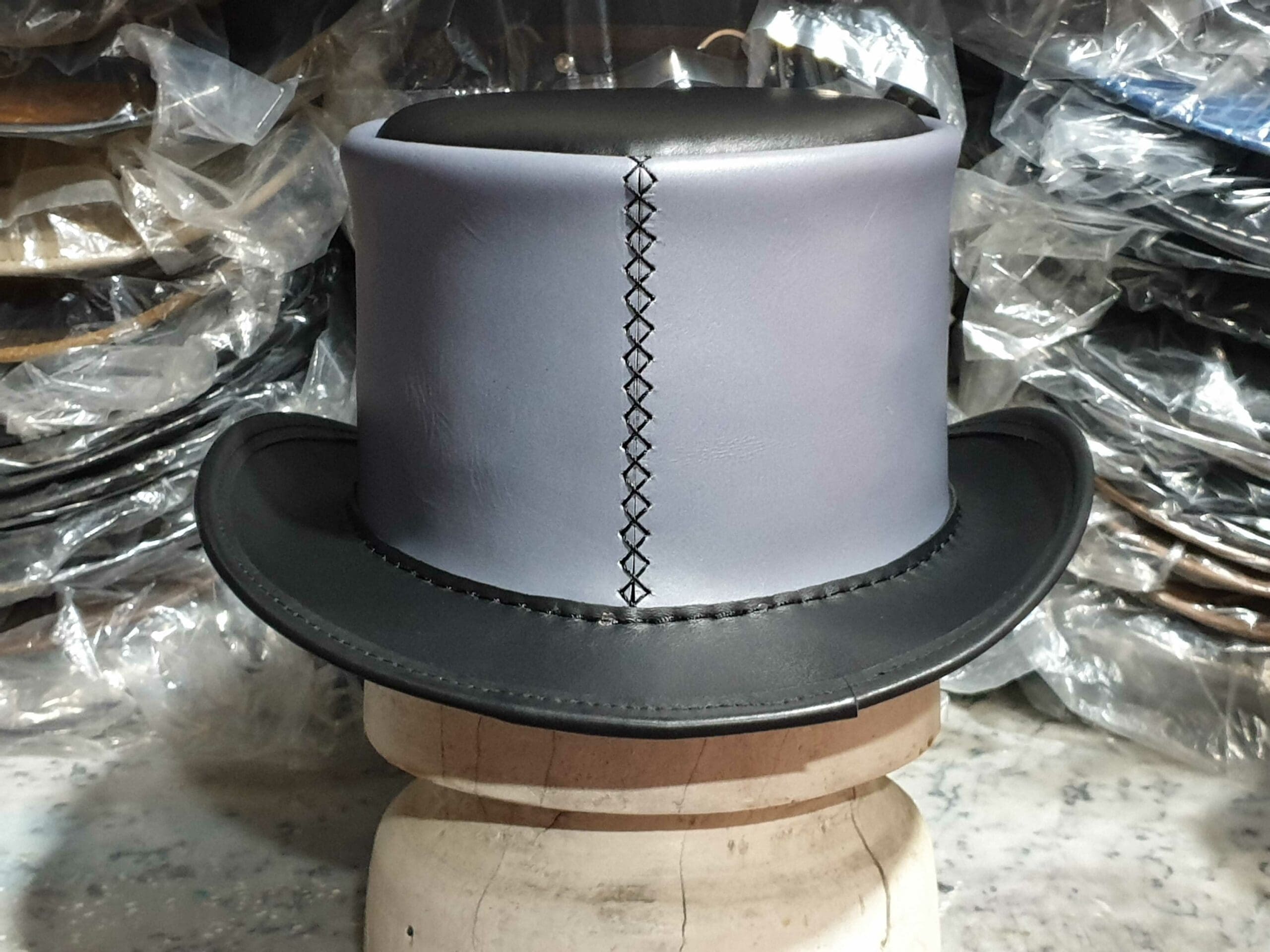 At its core, this top hat boasts premium black leather, exuding a sense of timeless elegance and durability.