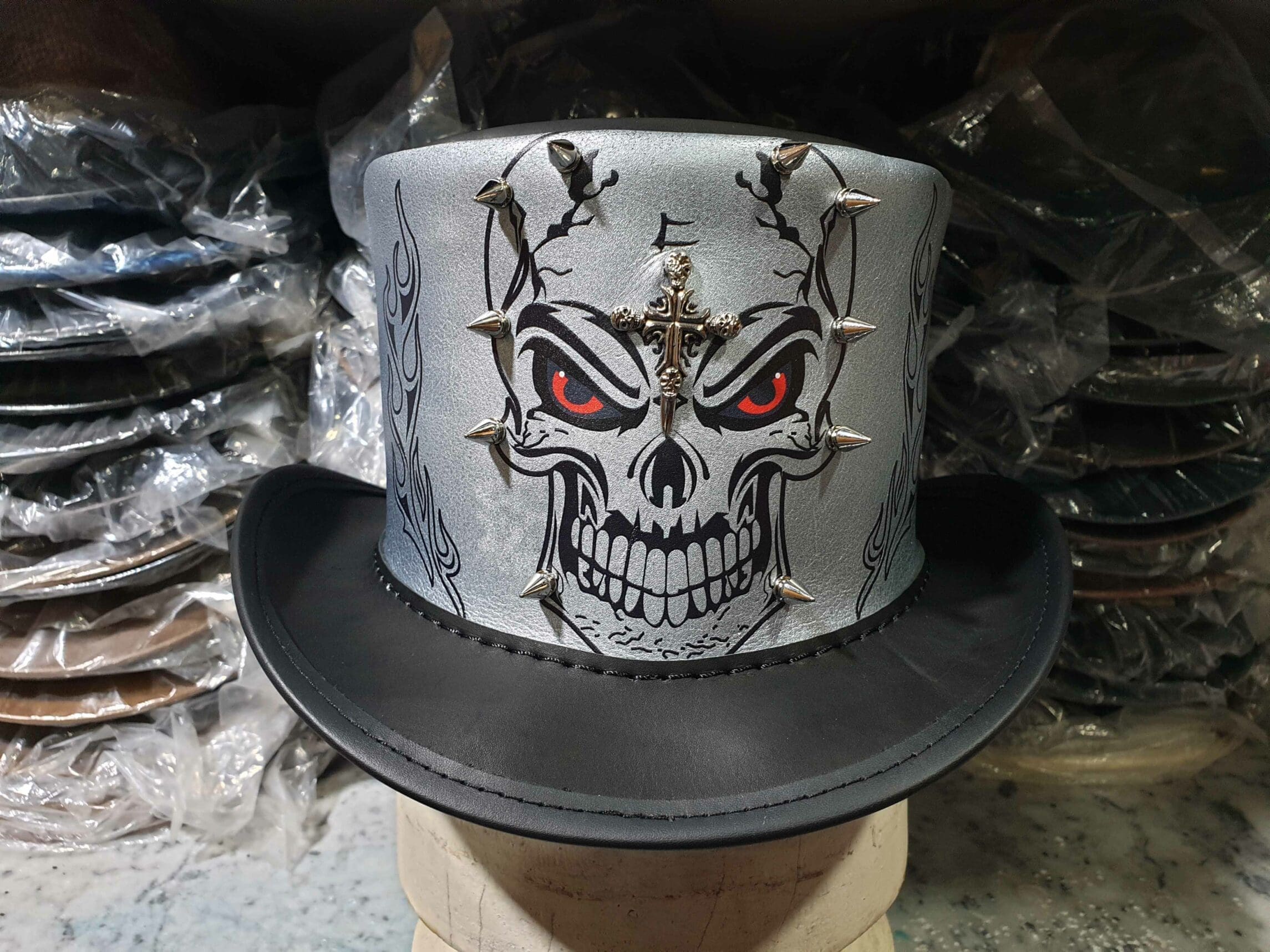 Whether you’re attending a masquerade ball, a themed soirée, or simply looking to make a statement in your everyday attire, the Redy Eye Gothic Skull men’s black leather top hat is sure to turn heads and spark conversations wherever you go.