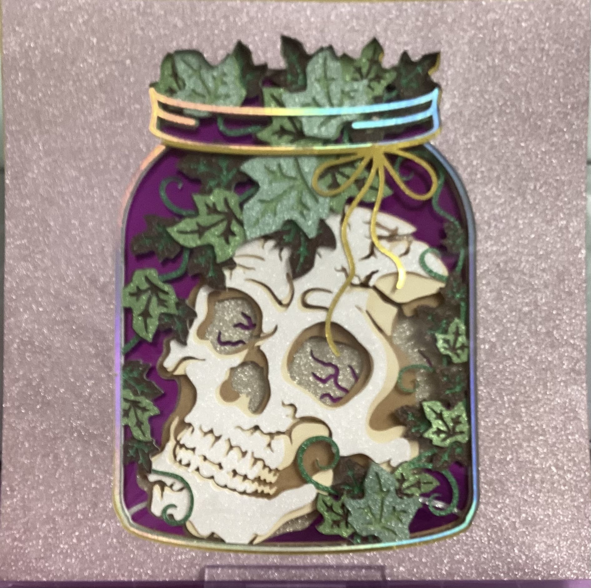 This handmade Gothic Skull Shadow Box is a striking piece of gothic inspired wall art created for collectors who appreciate bold design and layered craftsmanship. Featuring a detailed skull enclosed within a jar silhouette, surrounded by ivy leaves and subtle decorative accents, this handcrafted shadow box offers visual depth that draws the eye from every angle. Each layer is carefully placed to create dimension while maintaining a clean, intentional composition.