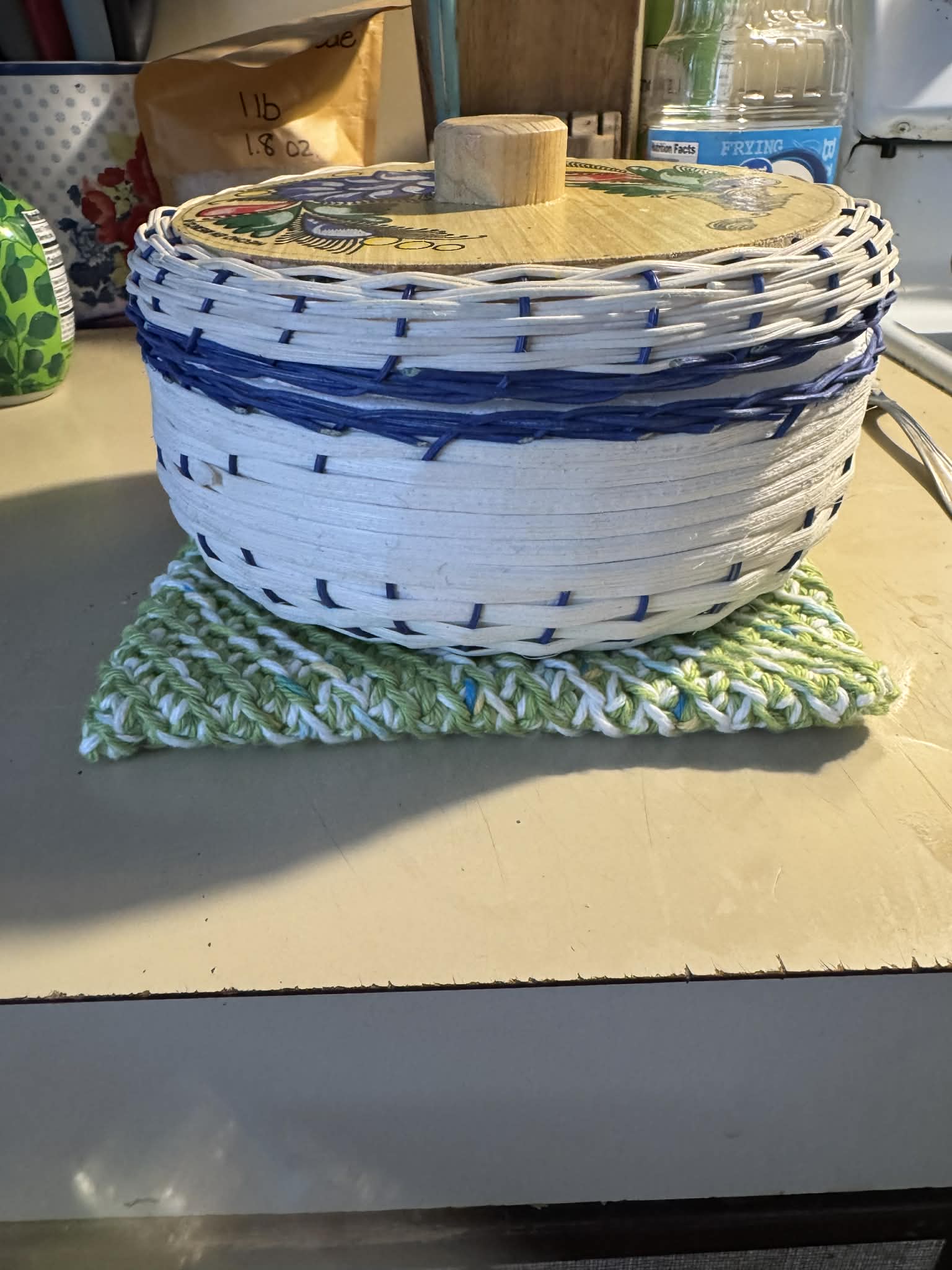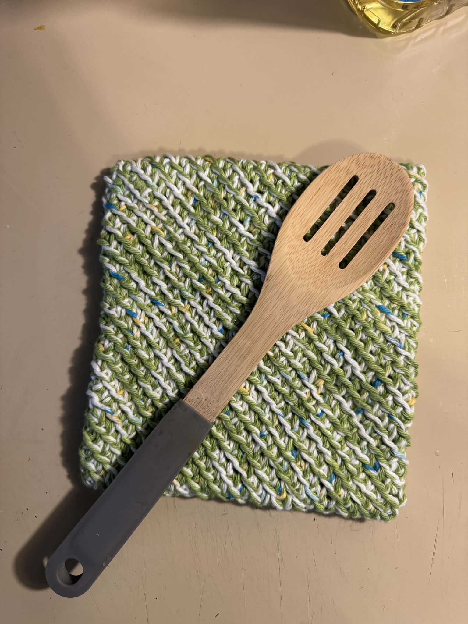 Add a bright dash of color to your kitchen this summer with this double thick green and white crochet trivet/potholder.