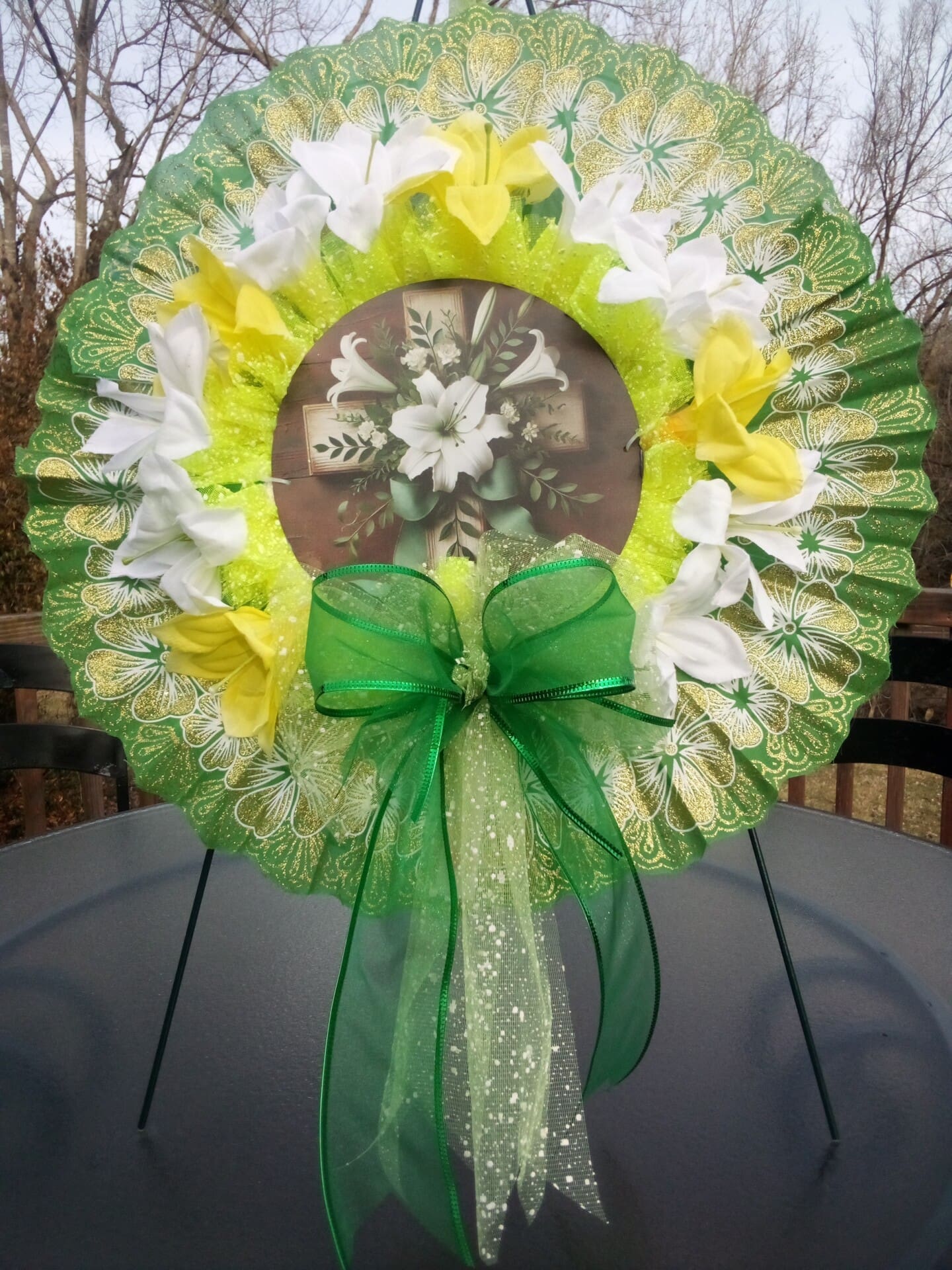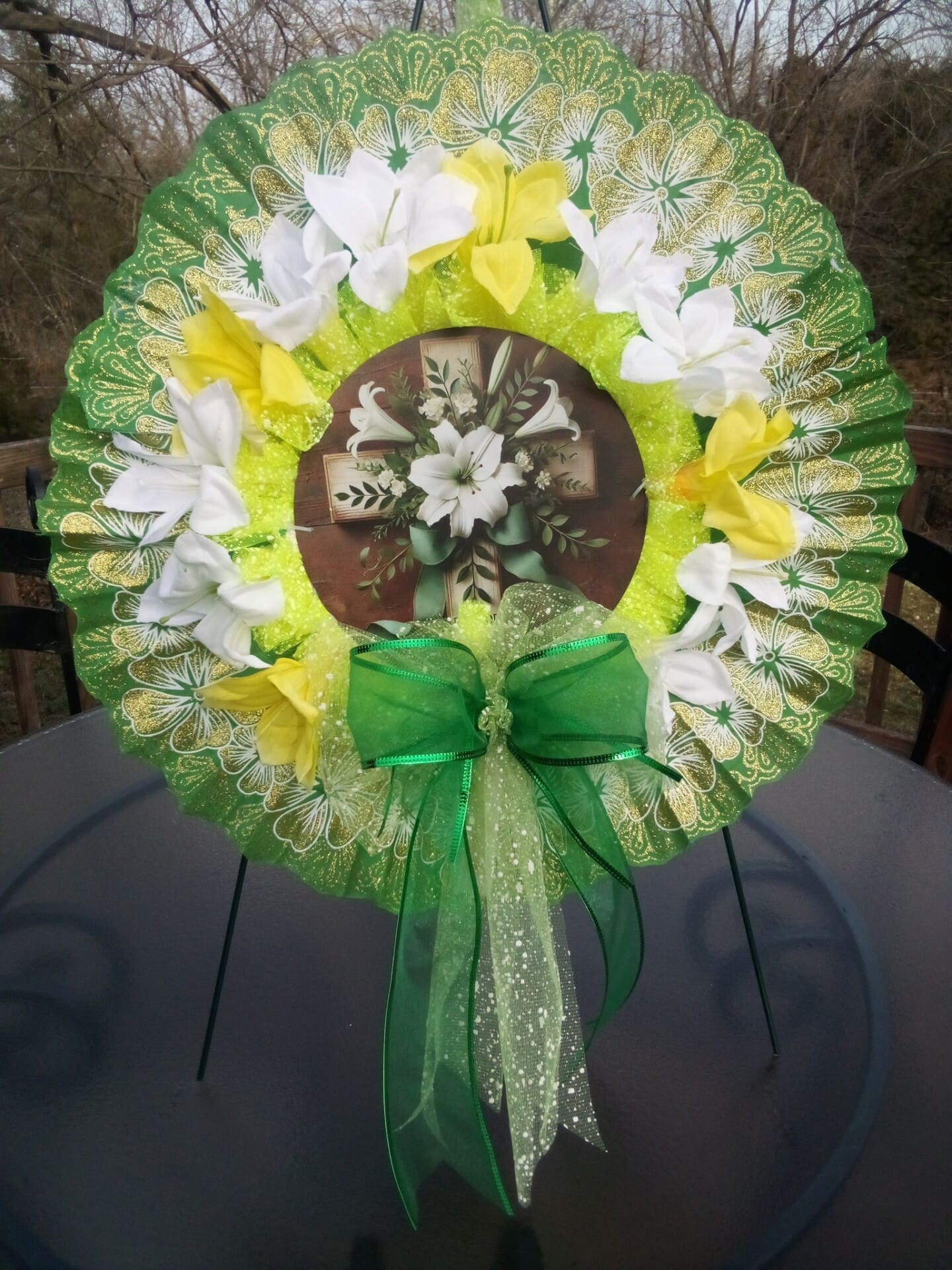 Specification: Handmade Green and White Easter Wreath