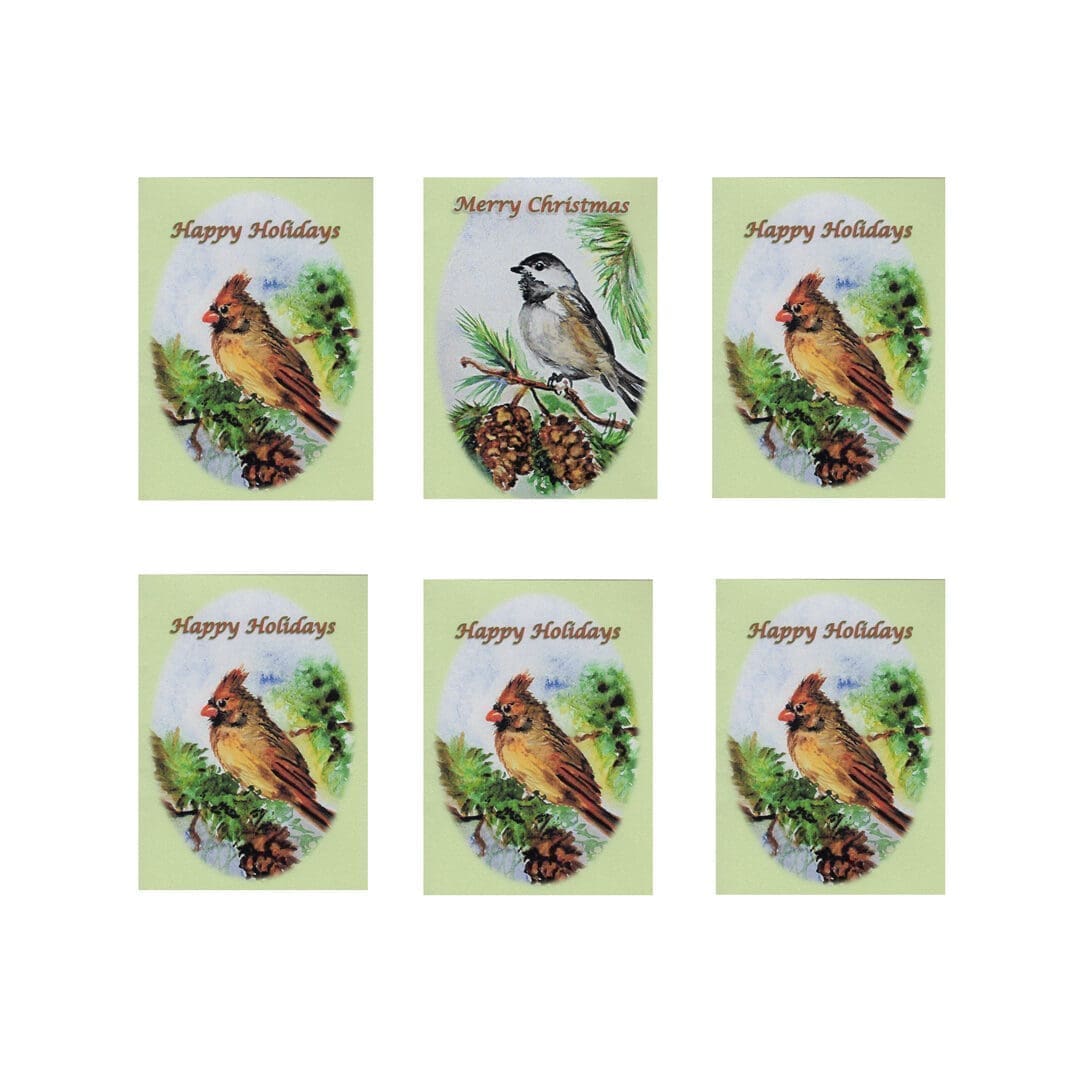 Happy Holidays 2 Birds Watercolor Nature Art Note Card Boxed Set of 6 Assorted Designs CLEARANCE Limited Stock