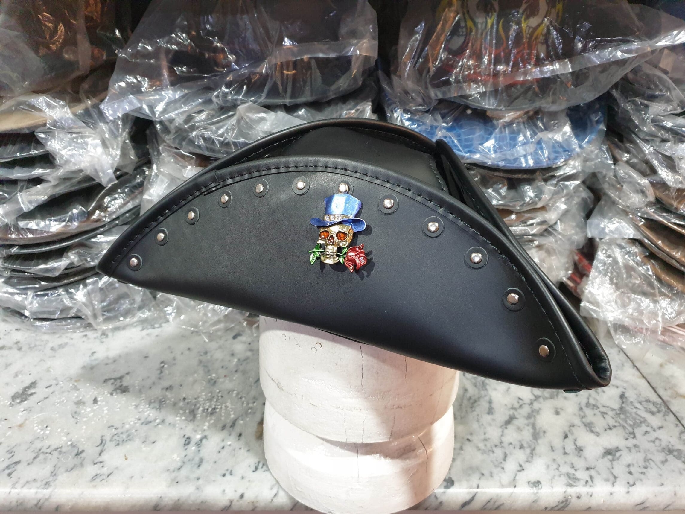 Embrace your inner pirate with the Jack Sparrow Character Inspired Black Leather Tricorn Hat, a must-have accessory for anyone looking to make a bold and adventurous statement.