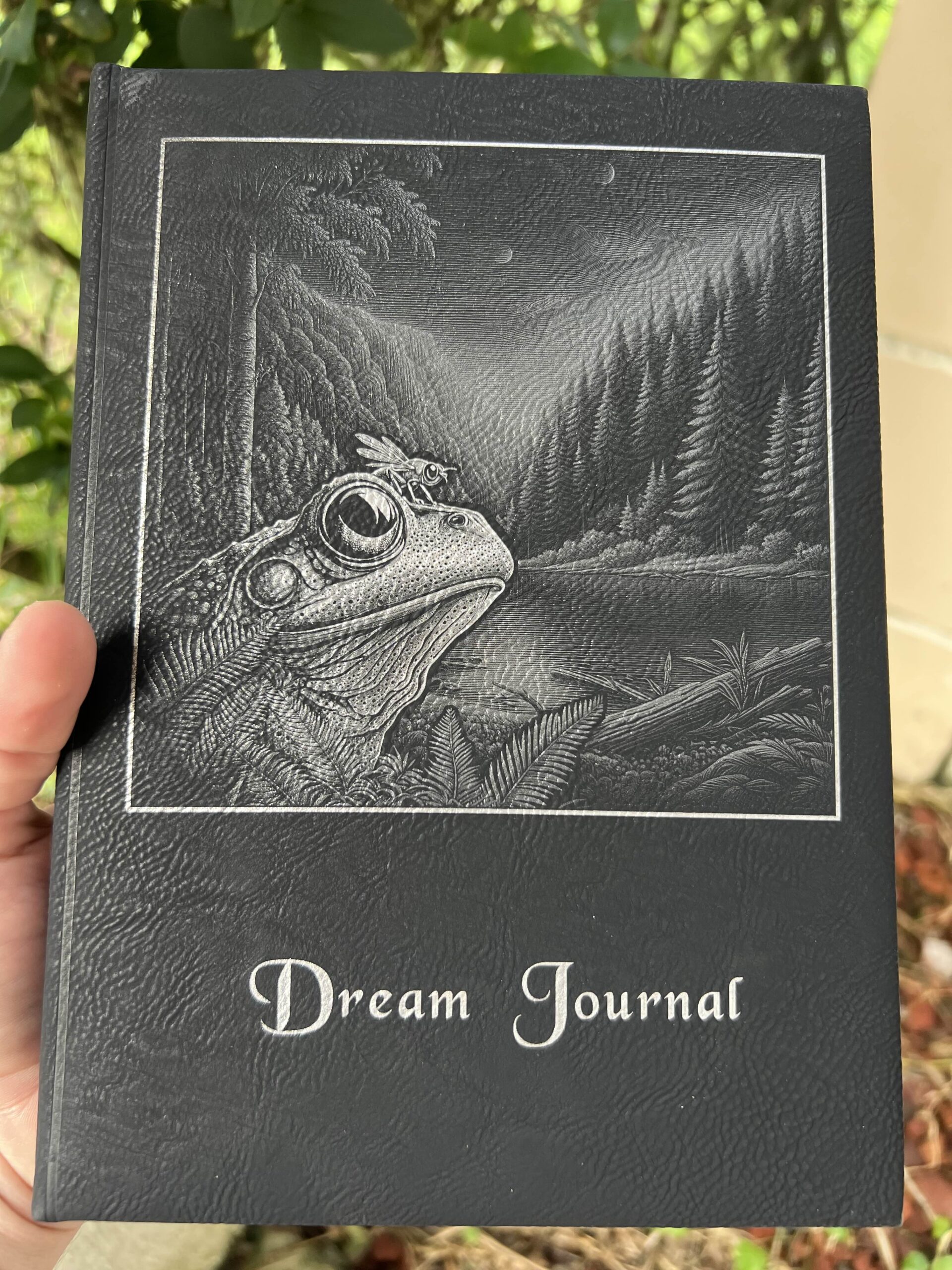 Mystical leatherette dream journal frog in the woods design