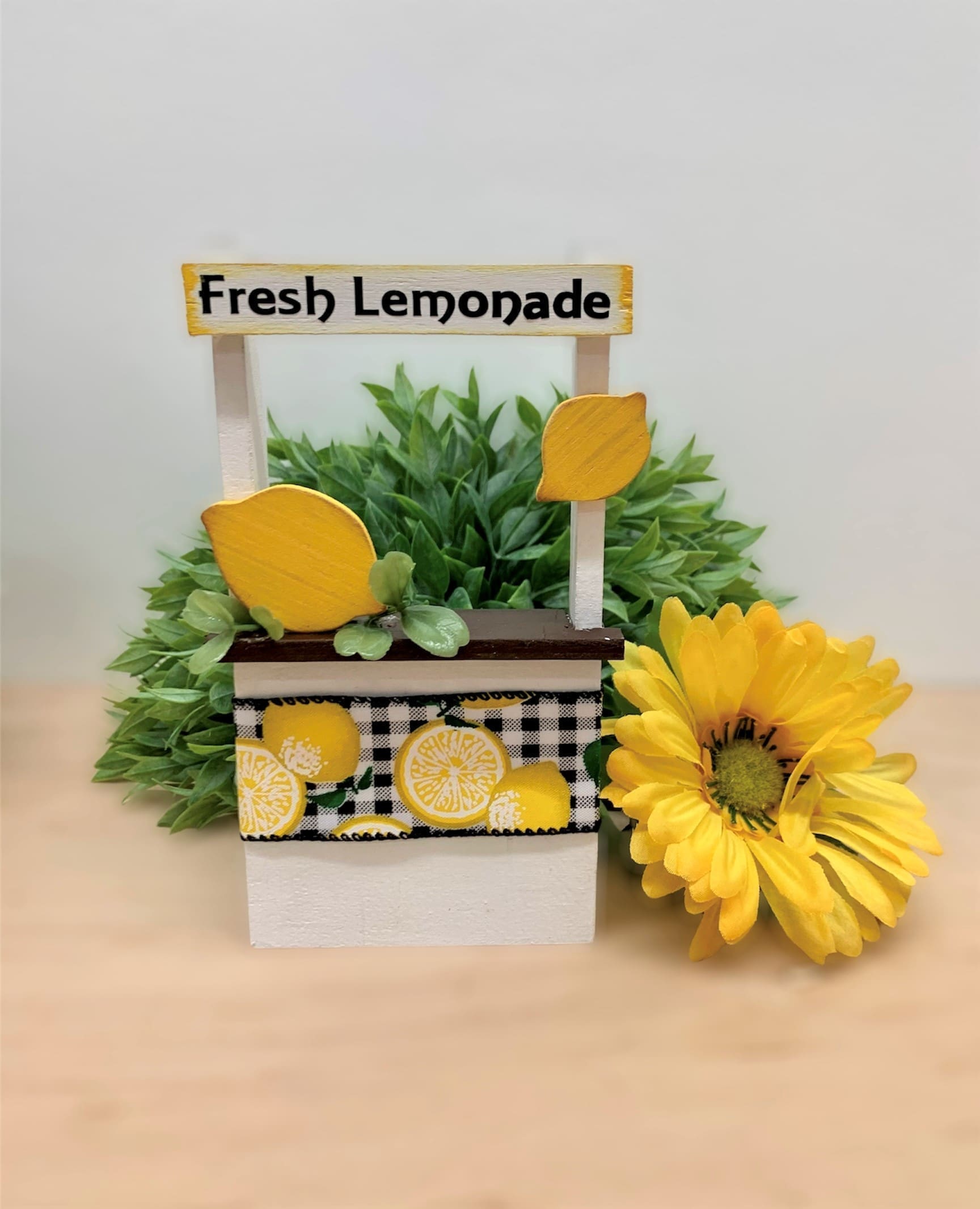 Lemonade Stand 7″, Lemonade Cup 4″, Large Lemons 6 1/2″,