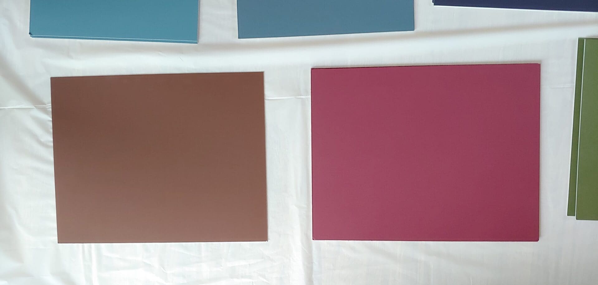 Lot of 36 pieces of 11 different colors of 11 x 14 inch Discontinued Crescent Rag mat Cotton 4 ply Colored mat boards. The garnet reads as pink but is really a deep burgundy red as shown in the second photo.