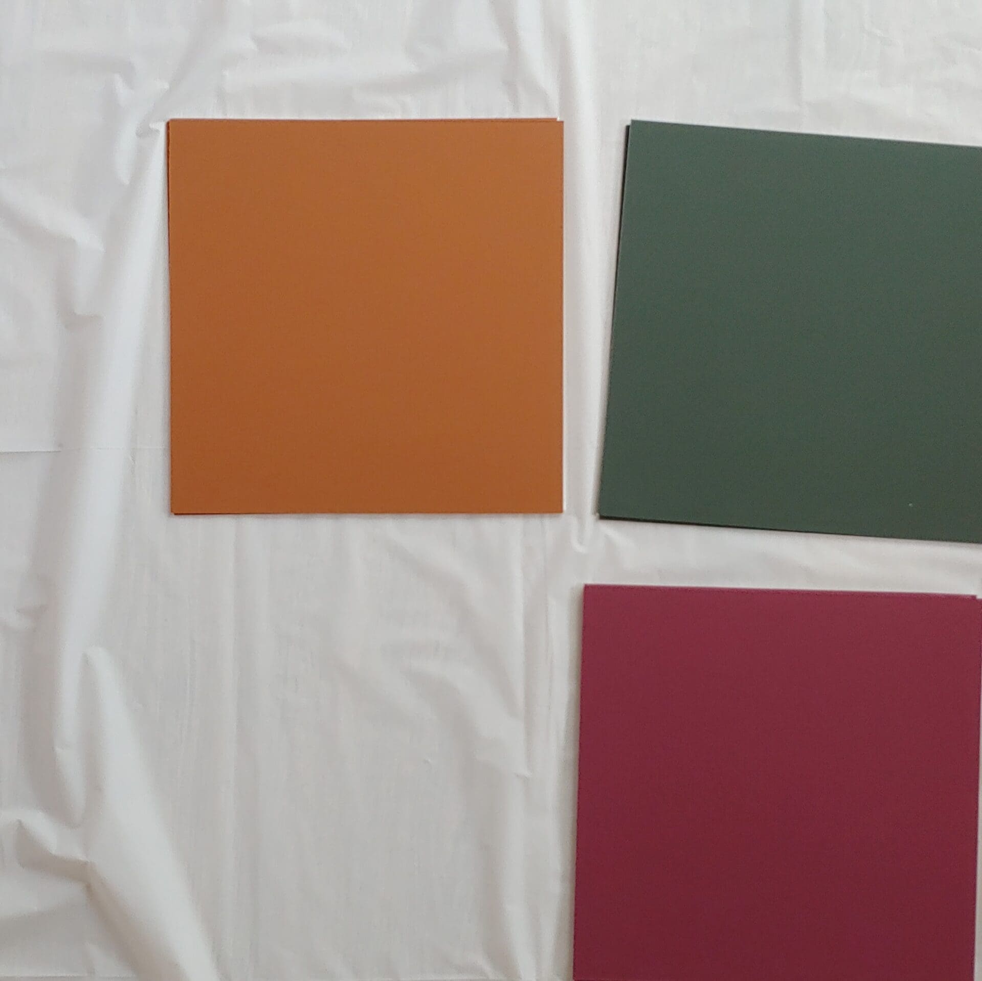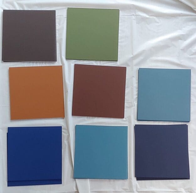 Lot of 41 pieces of 11 different colors of 8 x 8 and 10 x 10 inch Discontinued Crescent Rag mat Cotton 4 ply Colored mat boards.