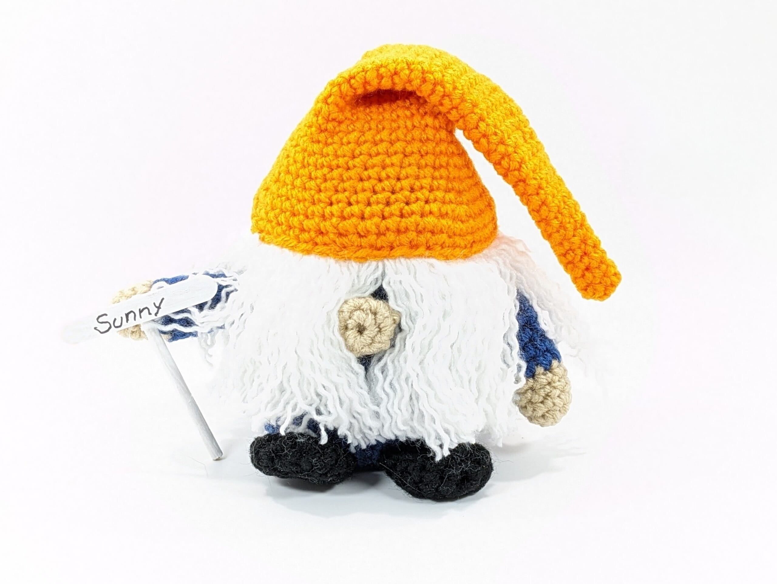 Also Each Lucky Gnome Crochet Home Decor is hand crochet with acrylic yarn and filled with a polyester fiberfill. There is also a plastic cup with small stones to weight his bottom down.