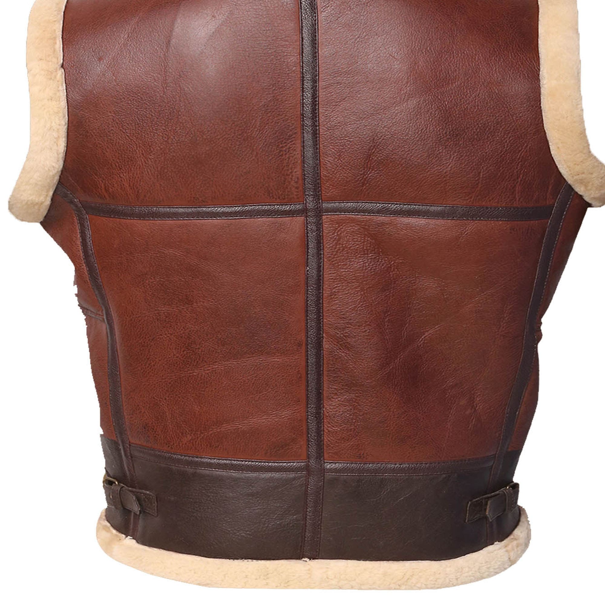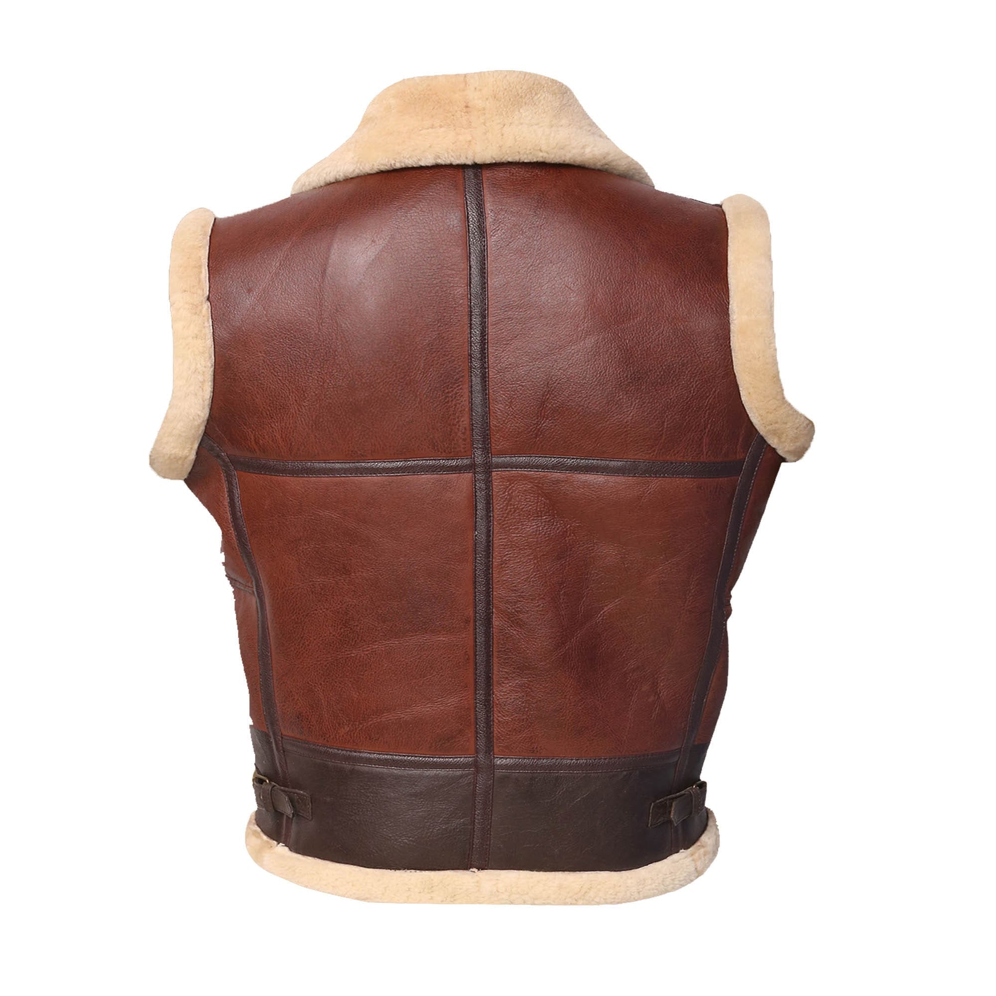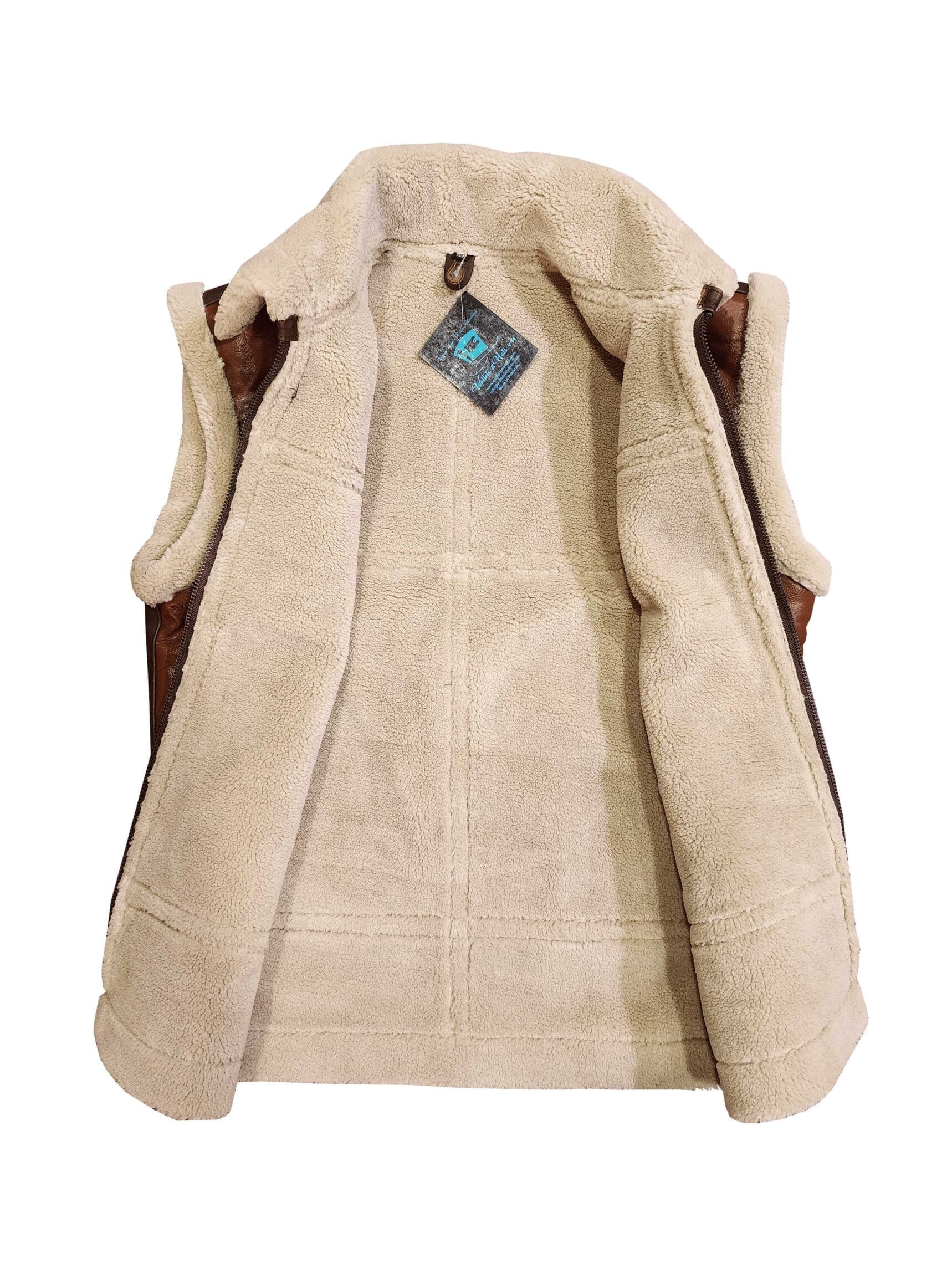 The brown hue of the shearling used in this vest isn’t just a color; it’s an embodiment of warmth, richness, and a nod to the classic appeal of genuine shearling. This vest is a must-have for those who seek both a timeless piece and a cozy expression of rugged, masculine style.